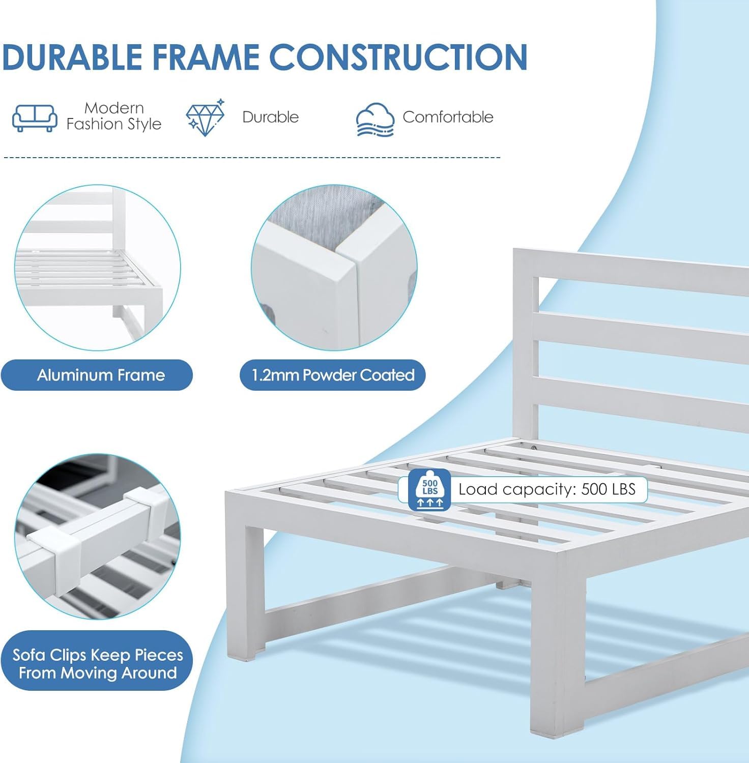- Easy to Assemble & Effective Support: Our outdoor aluminum sofa is easy to assemble, with each seat typically taking just 15-20 minutes; To ensure a smooth assembly process, we provide a comprehensive installation manual, helpful video guides, and all necessary accessories; Plus, the whole set is under a one-year manufacturer's warranty, and don't worry, we are dedicated to providing exceptional professional customer support with timely assistance if any questions or assistance needed