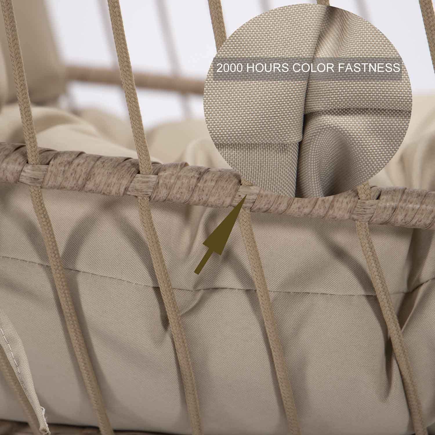- STURDY CONSTRUCTIONS: The seat and frame of the egg chair are constructed of polyethylene rattan wrapped around a powder-coated iron frame for weather-resistant protection, strength, and durability; the back features nylon rope