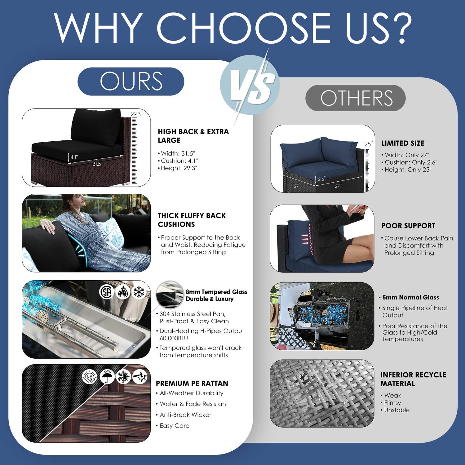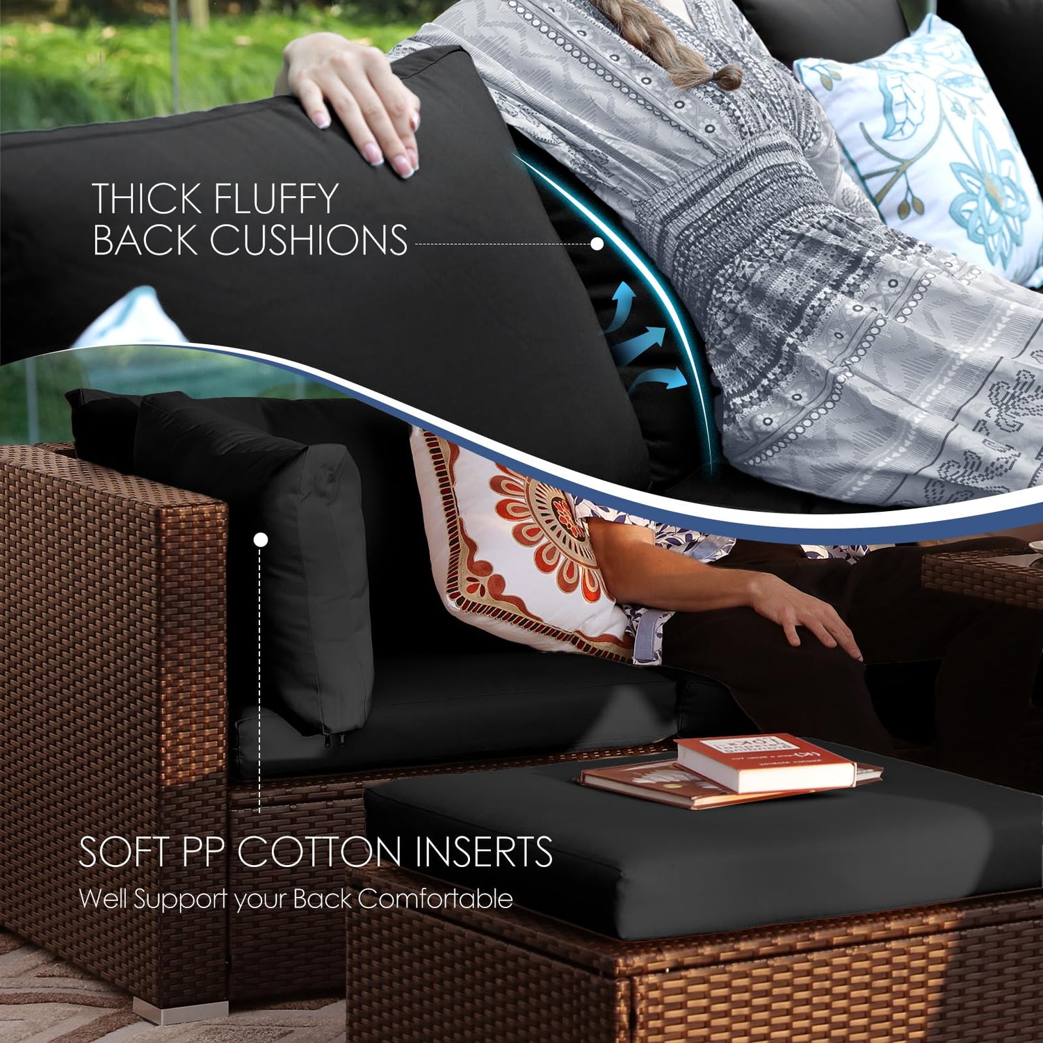 - 29.3'' HIGH-BACK DESIGN: With a height of 29.3 inches, it is customized for ultimate relaxation and stands out from the mainstream 25 inches; Its modular components can fit your preferred arrangement and blend seamlessly into your outdoor life; The high backrest supports your waist and back without pain, even after a long time sitting, making every moment a therapeutic retreat