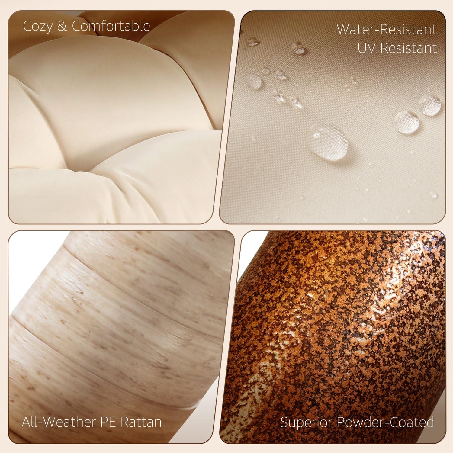 - Sturdy Construction: This xl large chair is constructed with a heavy duty and water resistant powder-coated iron frame, either gold or silver-plated for your reference, wrapped with all-weather proof premium PE rattan, ensuring stability and longevity; Supports up to 700 lbs