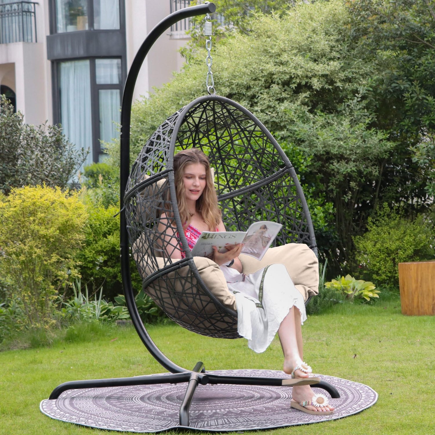 - Sturdy & Durable: Rigorously tested for durability, the egg chair features reinforced joints engineered to support up to 450 lbs; Its colorfast, abrasion-resistant yarn-dyed fabric withstands friction and sweat discoloration, while pressure-tested weaving technology prevents fraying during active use; Unlike fragile natural wicker, the UV-resistant PE rattan retains vibrant color and toughness year-round, performing reliably in both scorching summers and freezing winters
