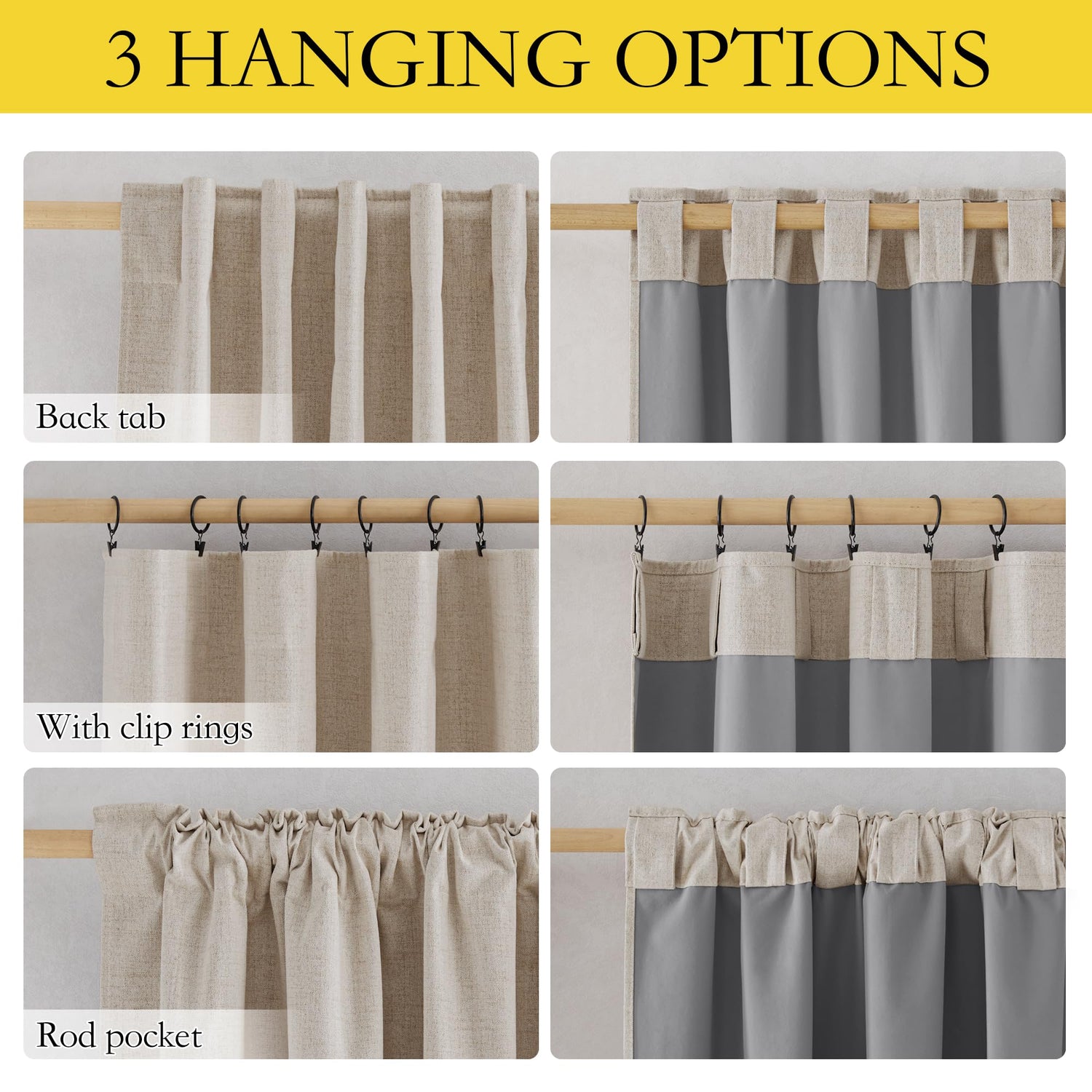 - Wide Compatibility: These durable elegant linen blend blackout curtains will decorate your windows and rooms with new sense. Perfect for bedroom, living room, kitchen, patio, room divider, functional and Morden. While still have top performance on energy saving and noise reducing, create airy, breathable, and rustic style.