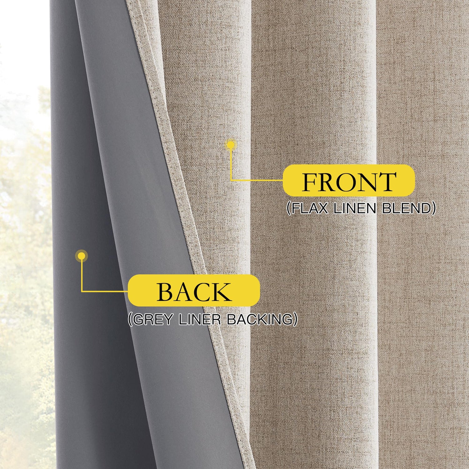 - Flax Linen Blend: Linen blackout curtains bring both casual warmth and refined style to the room. The weave of the natural yarn-dyed fibers creates dimensional highs and lows for added depth. This curtain is an elegant option for any room in the home. Lab test shows these awesome curtain panels are environmental and vinyl free.