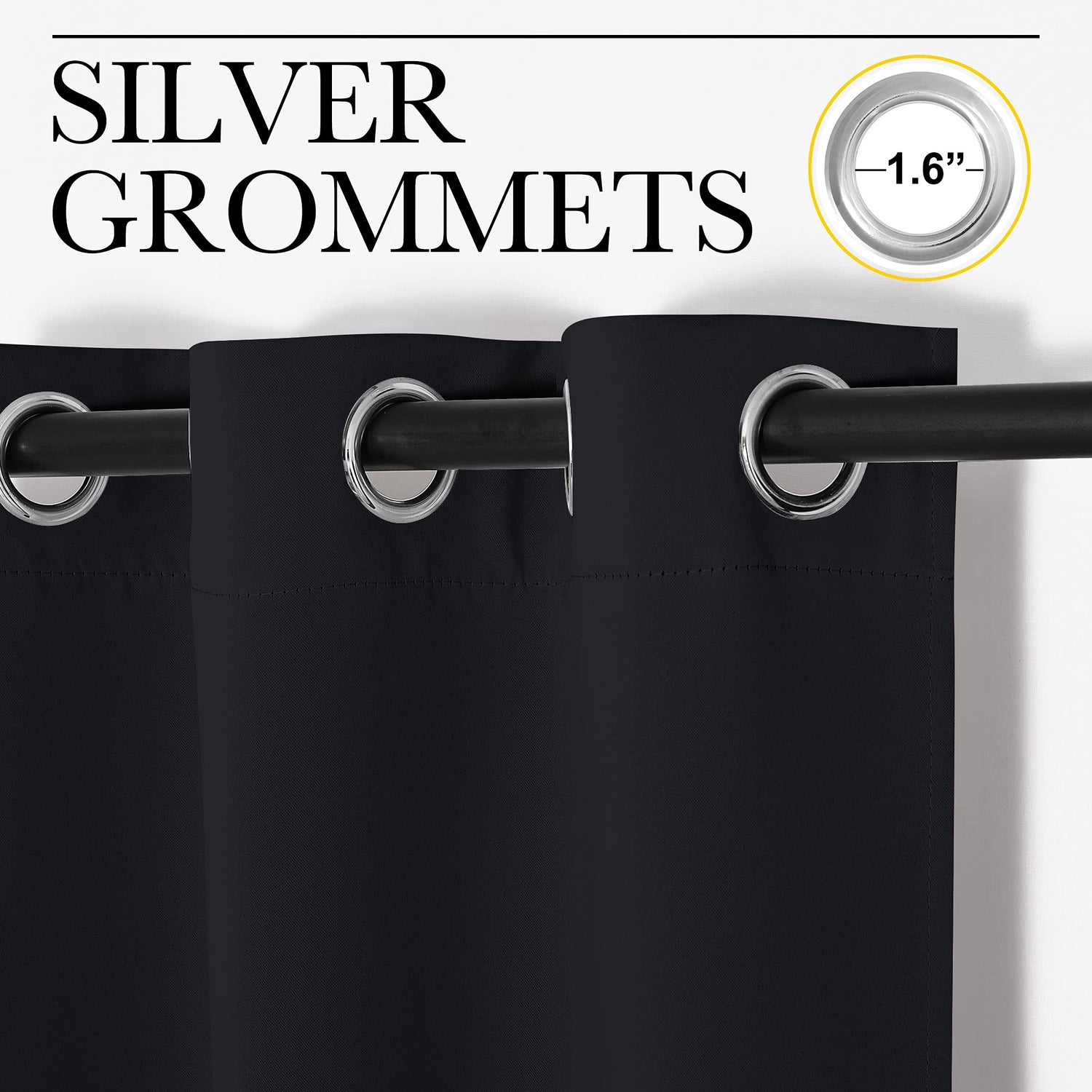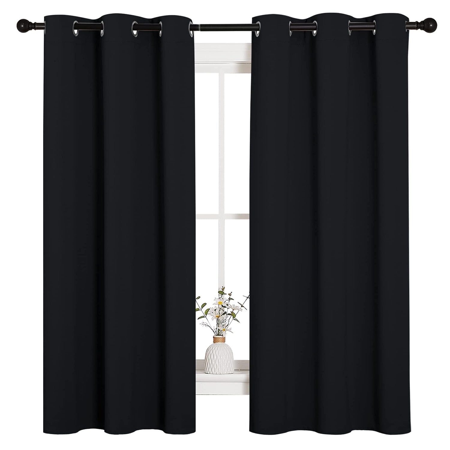 NICETOWN Halloween Pitch Black Solid Thermal Insulated Grommet Blackout Curtains/Drapes for Bedroom Window (2 Panels, 42 inches Wide by 63 inches Long, Black)