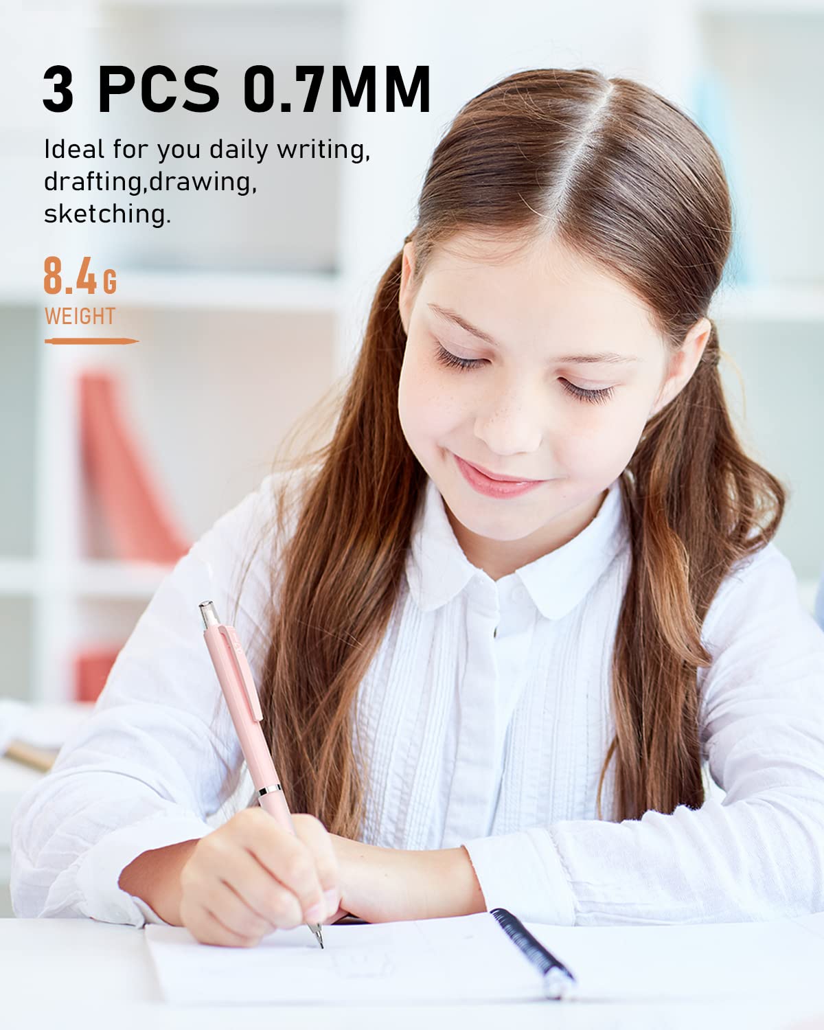 - Comfortable and Non-Slip Grip: The mechanical pencil 0.7 mm with a rubber grip, very soft and brings you to a comfortable, non-slip grip for less writing fatigue. Clip design is easily carrying, can clipped in pockets, books, note books cover