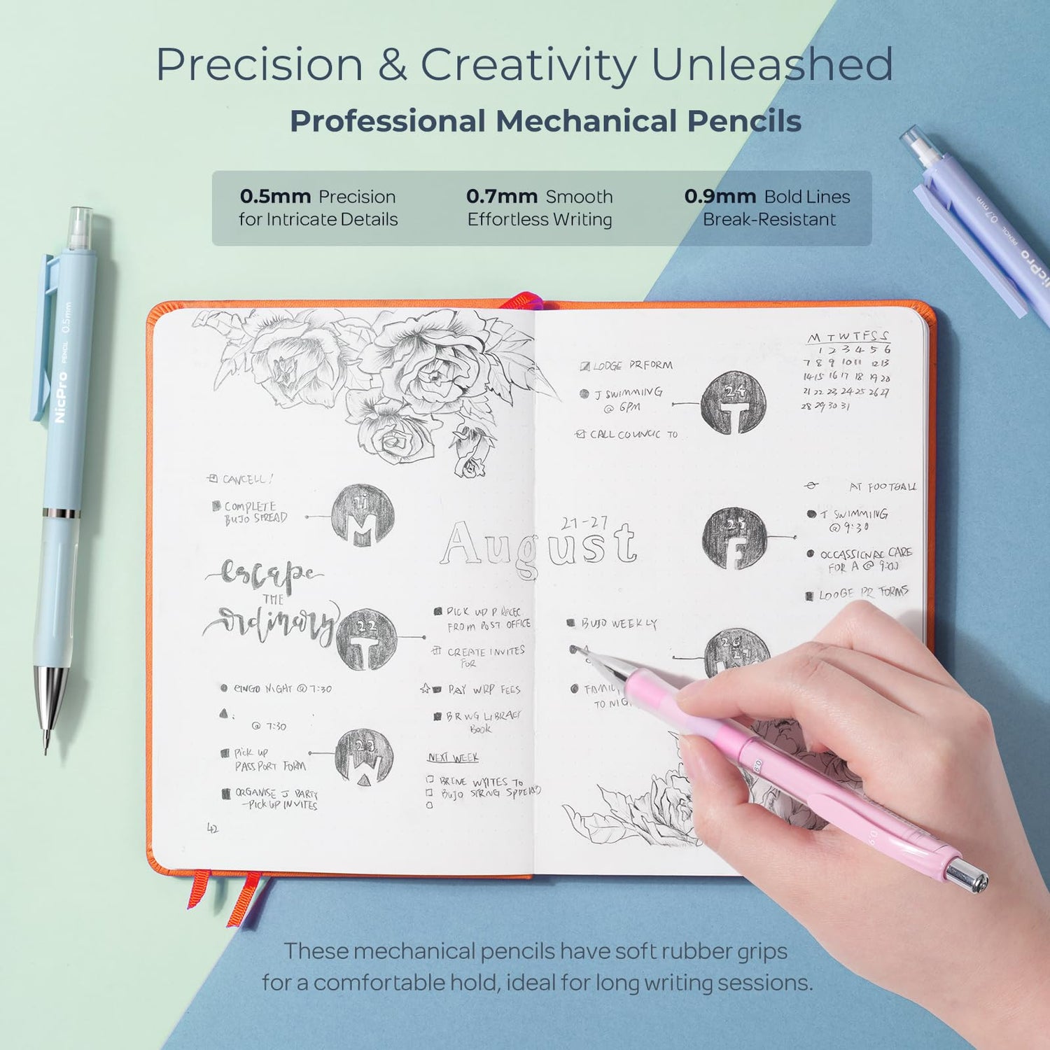 Nicpro 45PCS Aesthetic School Supplies with Pencil Case, Mechanical Pencils 0.5mm, 0.7mm, 0.9mm & 2.0mm with 498 PCS Refills, Cute Mechanical Pencil Set for Writing, Drawing & Drafting (Blue)