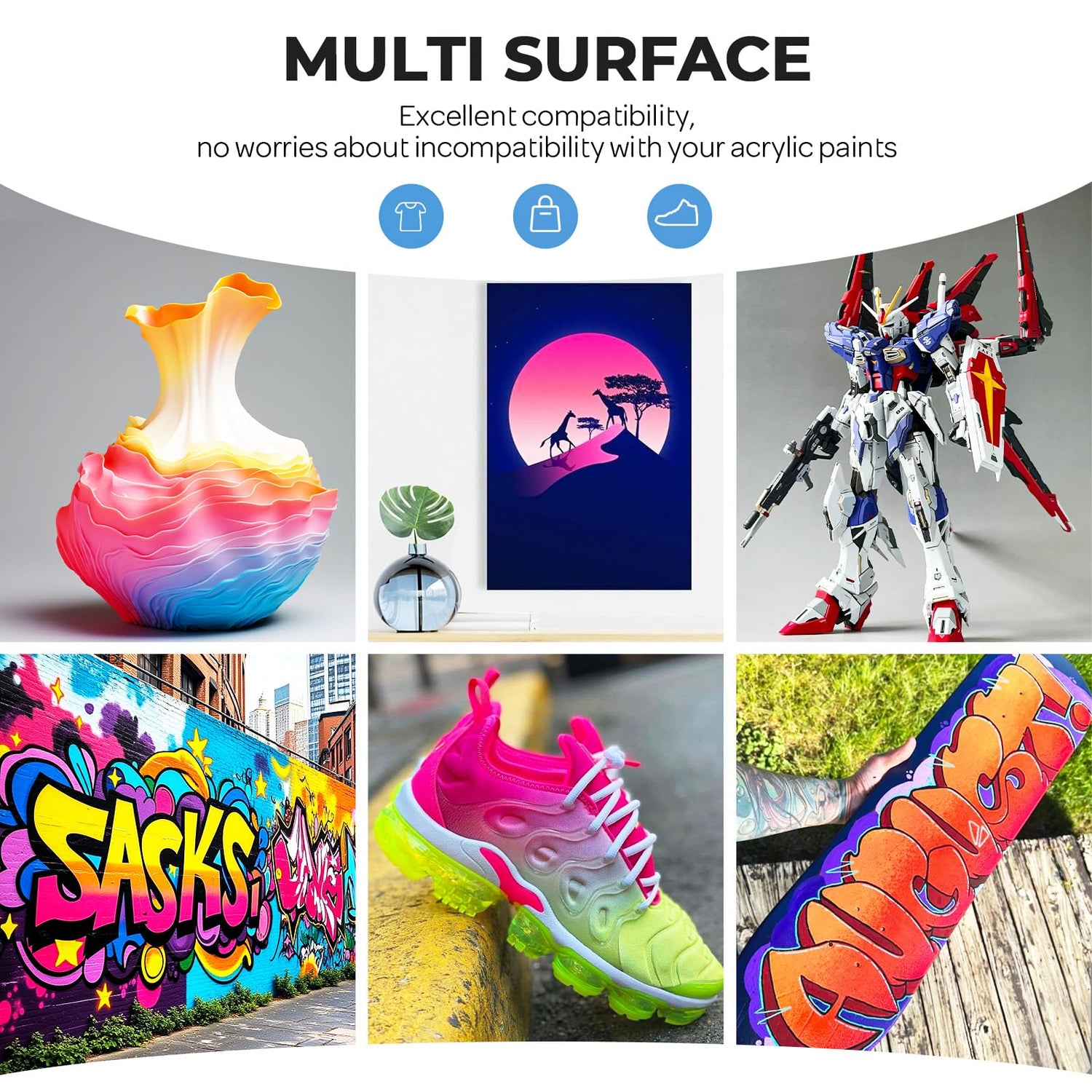 - Improved Flow: Mix with acrylic paint to reduce the viscosity, increase flow and transparency, and achieve a smoother and more manageable flow without sacrificing adhesion or durability. It helps minimize clogging in the airbrush