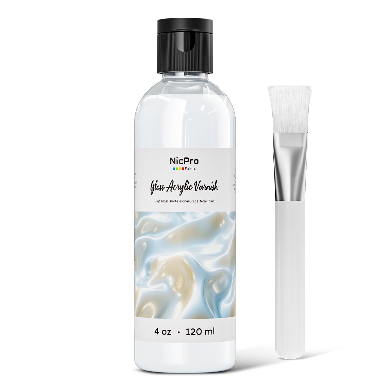Nicpro Gloss Varnish for Acrylic Painting(4 oz, 120 ml), Non-Yellowing, Non-Toxic, Anti-Crazing, Clear Acrylic Varnish for Pro Artist & Hobby Painter on Canvas, Wood, Artwork, High Gloss Finish