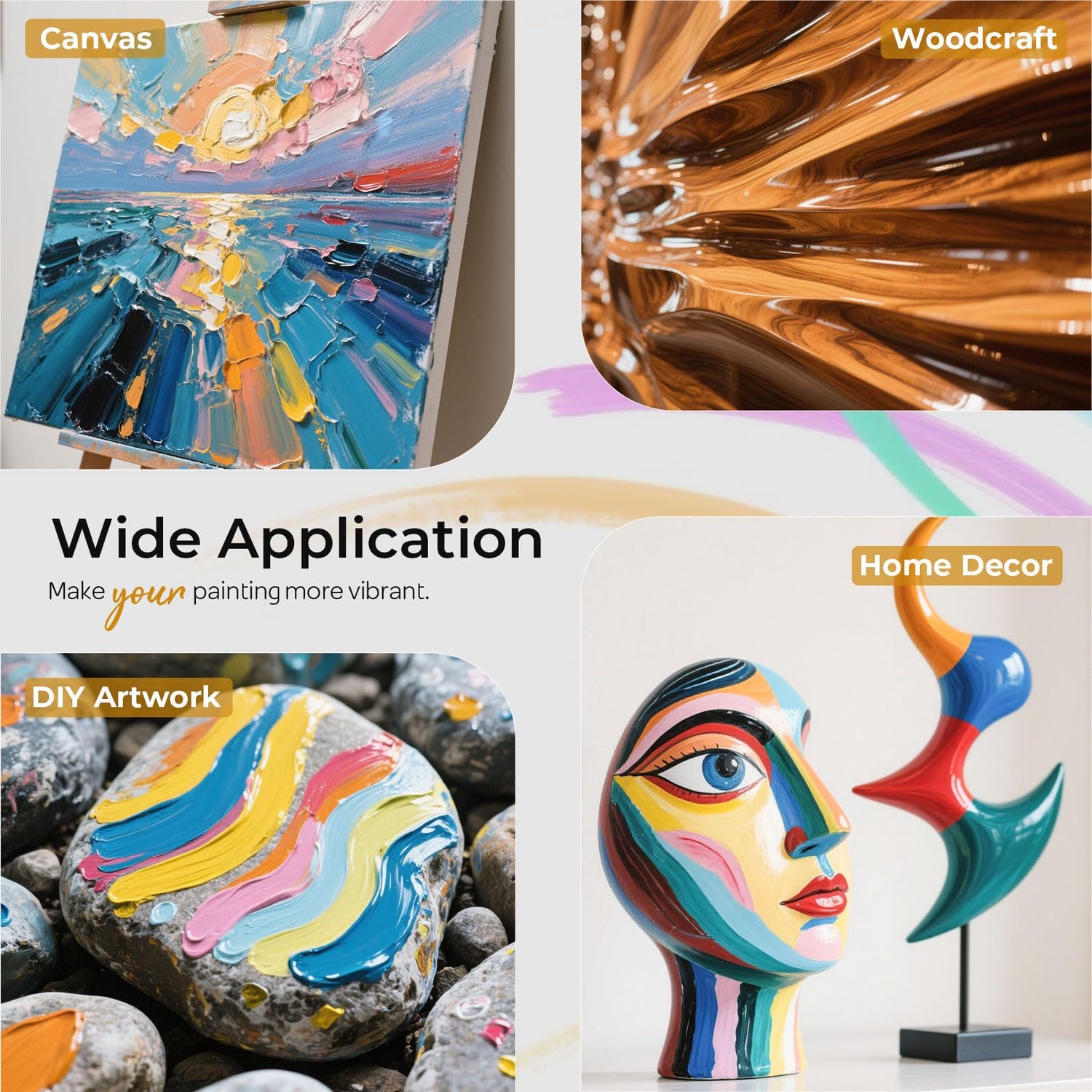 - WIDE APPLICATION: This clear acrylic varnish is suitable for most surfaces such as canvas, wood, crafts, DIY works, etc. Ideal for students, artisan, pro artists and hobby painter to seal a variety of artwork.