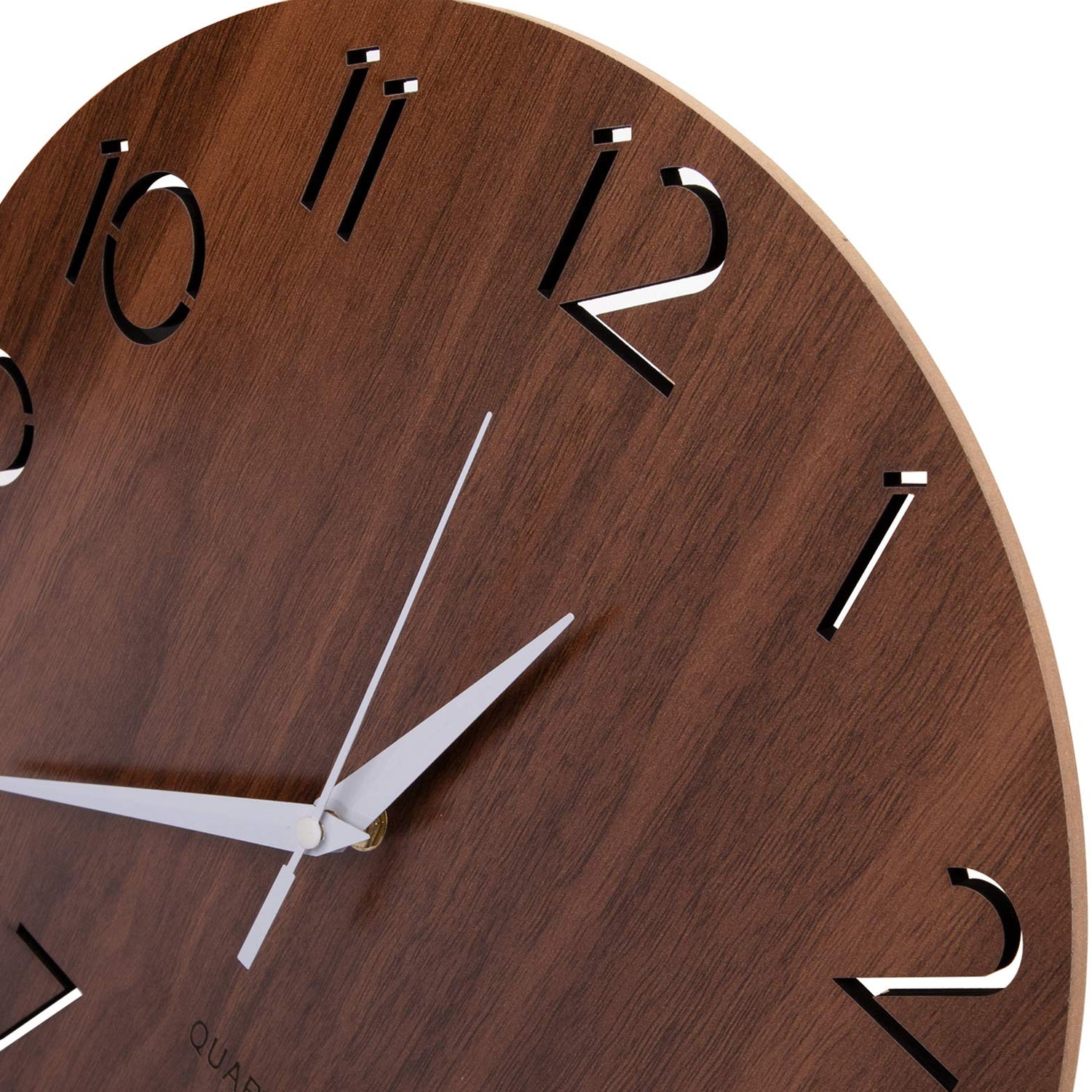 Nicunom 12 Inch Wooden Wall Clock, Cut-Out Numbers Design, Rustic Country Style Wall Clocks, Silent Non-Ticking, Decor for Home Living Room Bedroom Kitchen Office - Battery Operated