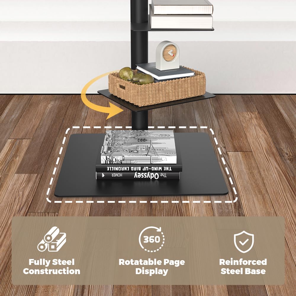 - 9 Adjustable Shelves: Customize your spinning bookshelf layout with nine adjustable shelves. Arrange them in various ways to suit your style, from vertical to cross or rotating configurations, giving you flexibility in how you display your items.