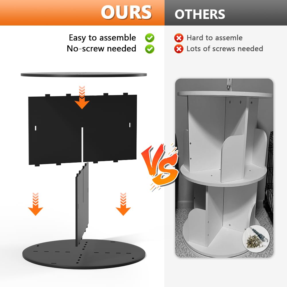 - 360° Rotation for Easy Access: Enjoy effortless access to all your books and belongings with the unique 360° rotating design. Simply spin the bookshelf to reach items from any side, making organization and storage a breeze.