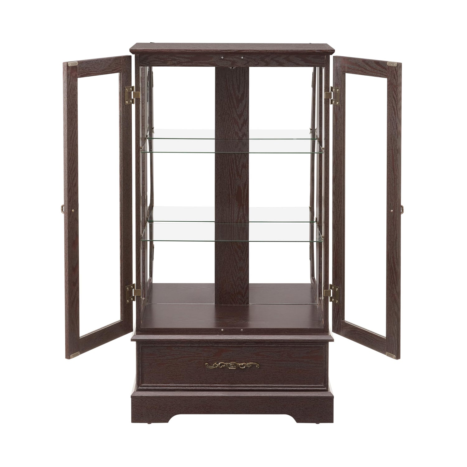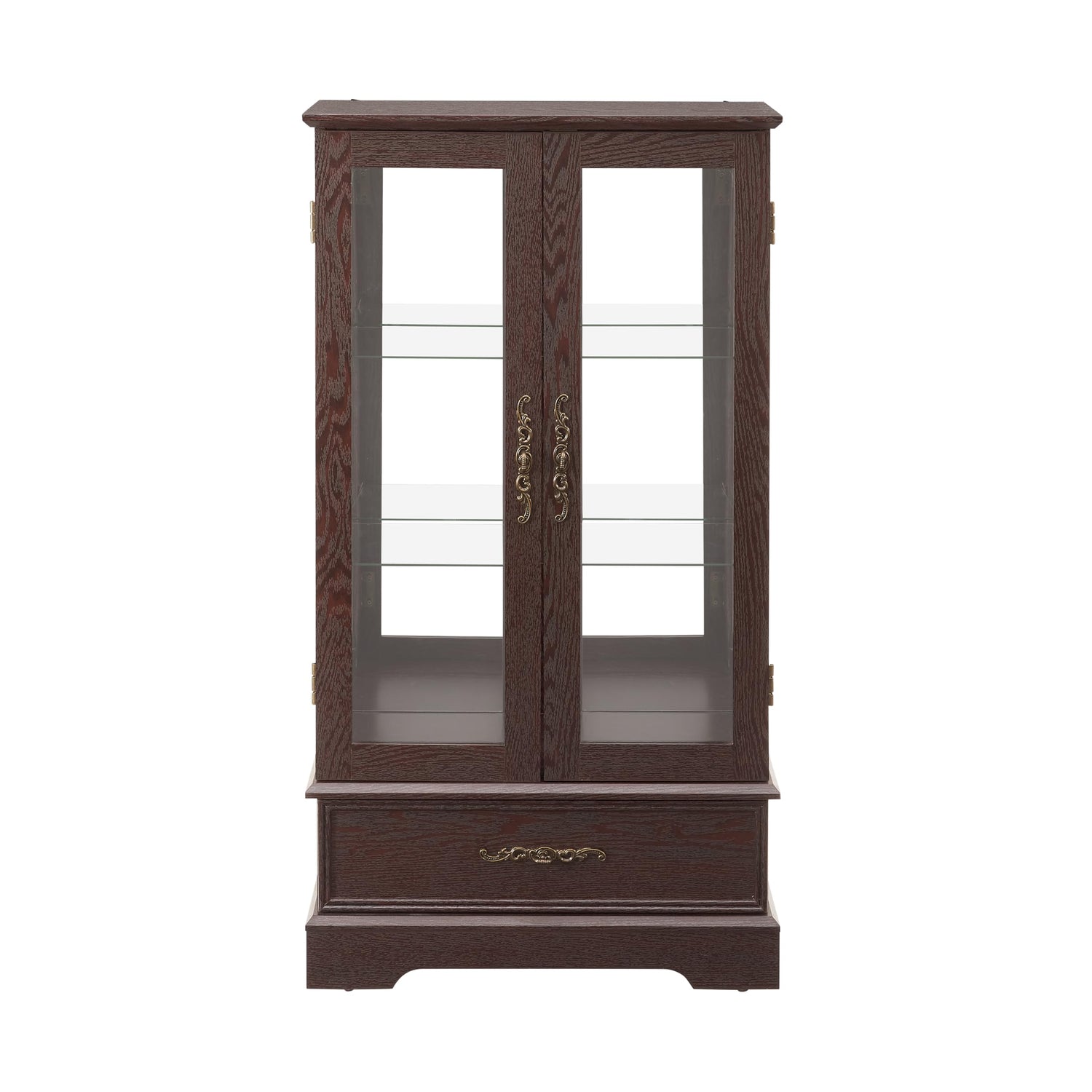 - 【Sturdy & Durable】Made of sturdy tempered glass, solid and laminated wood. Featuring glass doors, this sophisticated antique chest has 3 shelves and a large drawer, providing ample and versatile storage space. It includes one fixed wood shelf and two adjustable tempered glass shelves, each weighing between 15 and 22 pounds. This cabinet is perfect for storing books, wine and collectibles. Simply move the shelf pegs to the desired pre-drilled height to adjust the tempered glass shelves.