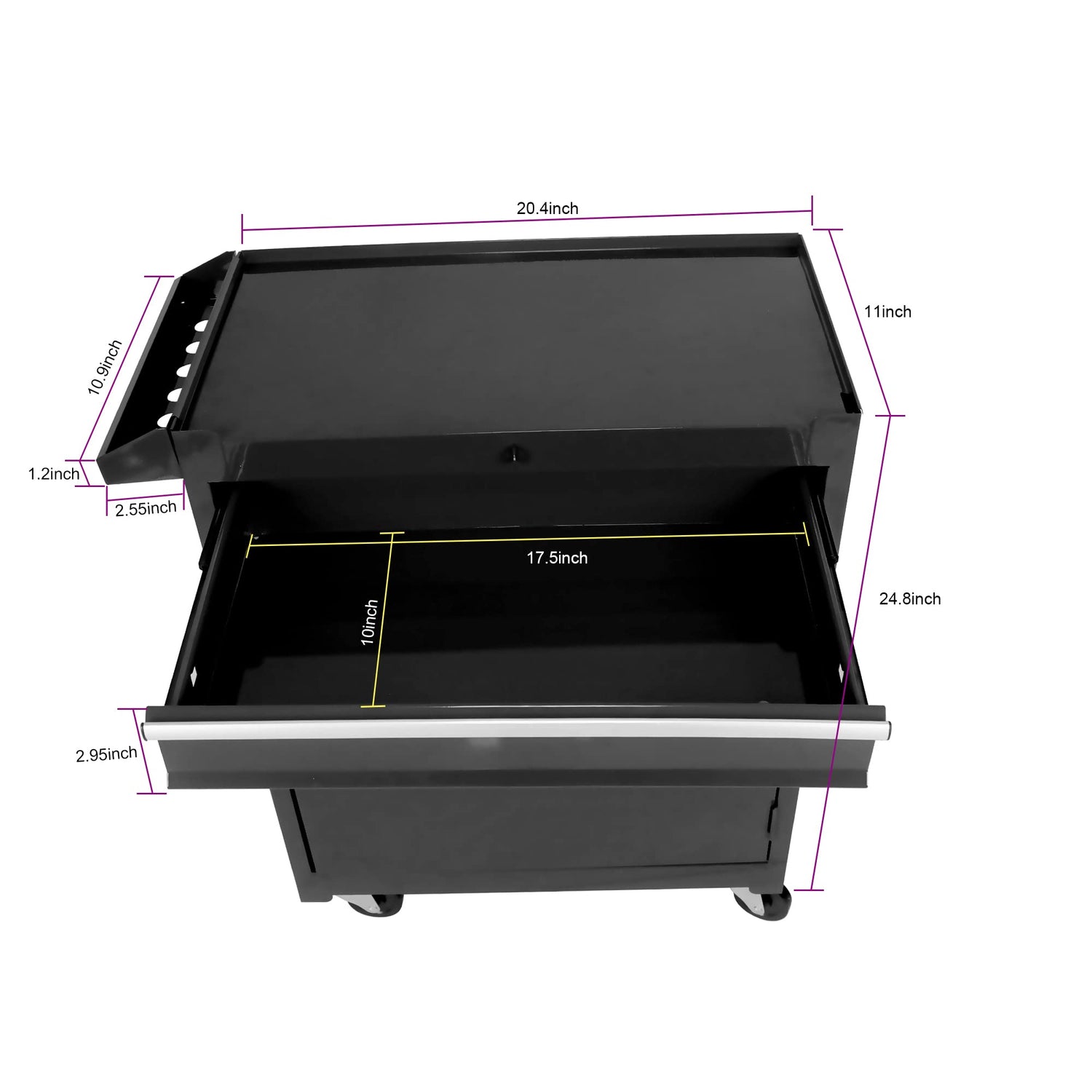 - 【Sturdy and Durable】The toolbox is made of high quality cold rolled steel, with a sturdy and durable structure. The wheels are made of rubber and plastic composite material and are not easily damaged. The toolbox is also easy to clean, perfect for daily use.