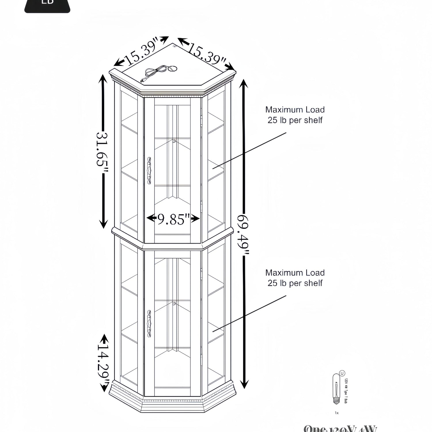 - 【Sturdy & Durable】The Corner Glass Display Curio Cabinet is made of high quality wood. With a total weight capacity of up to 150 lbs. and 25 lbs. per shelf, the glass shelves can accommodate the storage of most items. Wood-framed tempered glass ensures a safe, dust-free and durable interior. Anti-tip mechanism ensures the stability of the glass display case for your safety