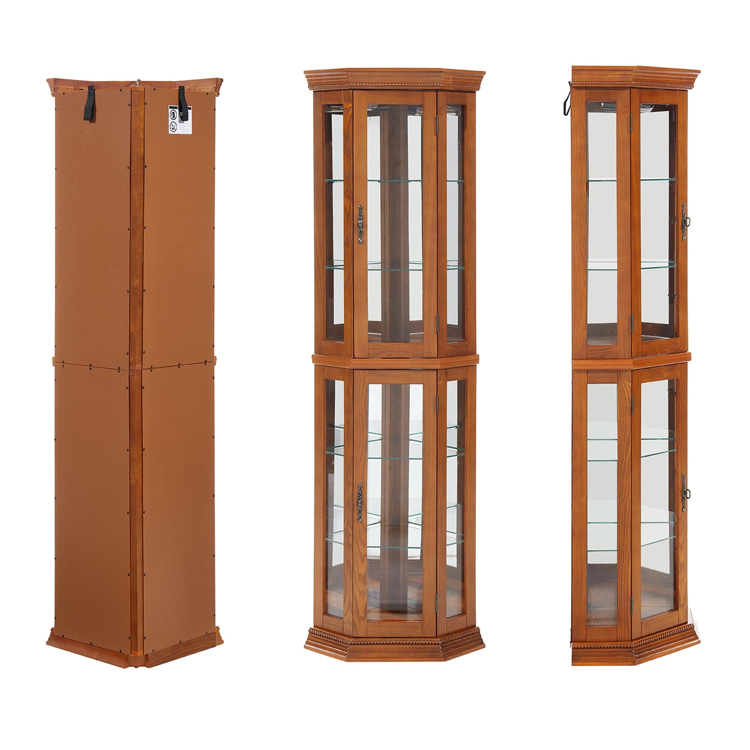 - 【Sturdy & Durable】The Corner Glass Display Curio Cabinet is made of high quality wood. With a total weight capacity of up to 150 lbs. and 25 lbs. per shelf, the glass shelves can accommodate the storage of most items. Wood-framed tempered glass ensures a safe, dust-free and durable interior. Anti-tip mechanism ensures the stability of the glass display case for your safety