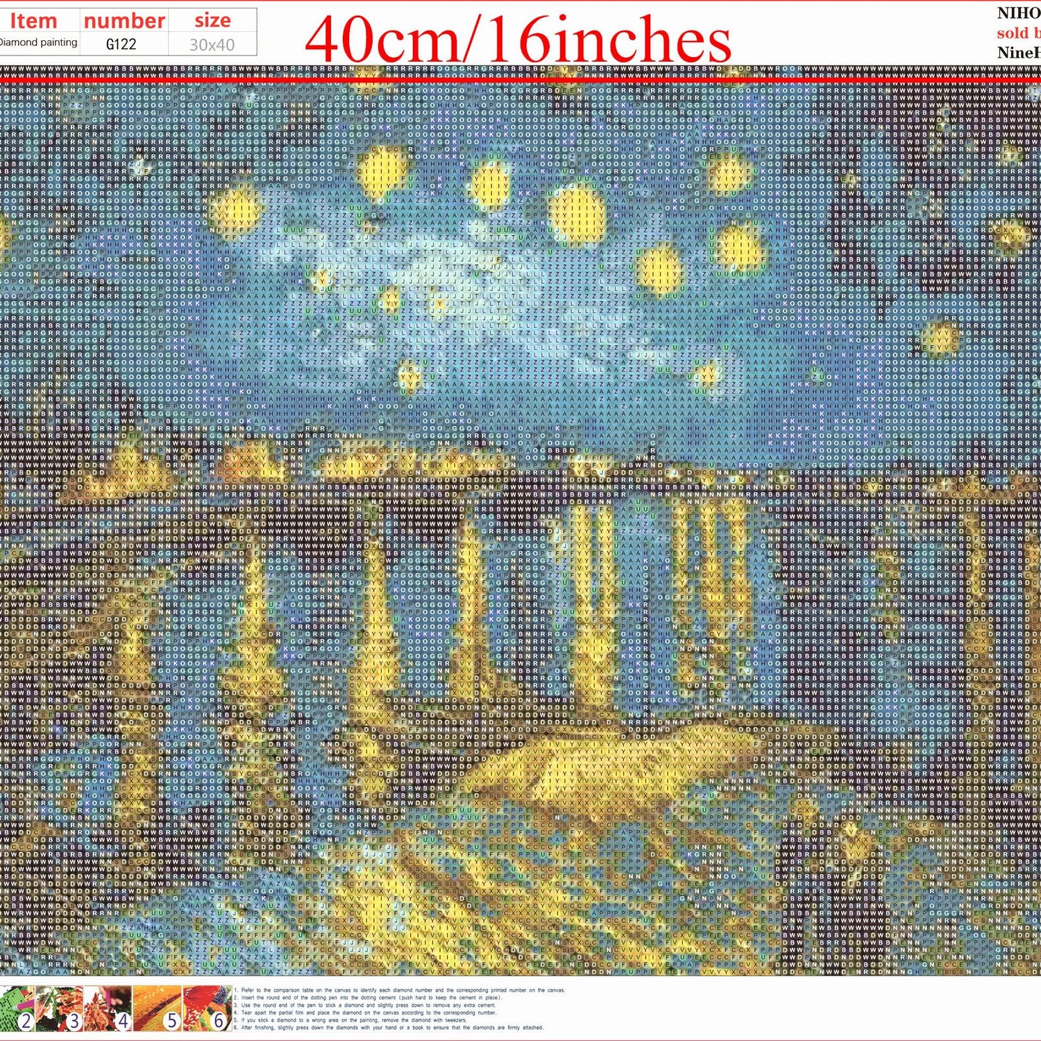 NIHO-JIUMA Diamond Painting Kits Starry Night The Rhone, DIY 5D Full Drill Diamond Art Gift for Adult/Teen, Home Decoration (30 X 40 cm / 12 X 16 inches)