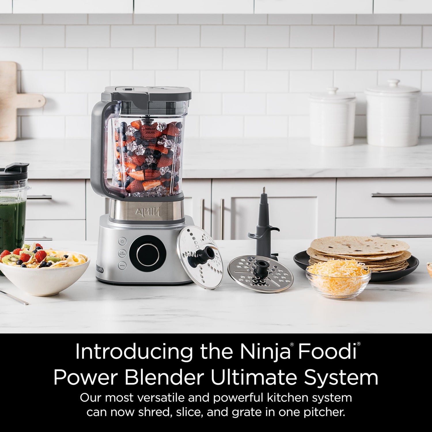 Details: The Ninja Foodi Power Blender Ultimate System with XL Smoothie Bowl Maker and Nutrient Extractor* is Ninja’s most versatile and powerful kitchen system—slice, shred, and grate with no extra processor bowl required. Our Reversible Slicing/Shredding Disc and Grating Disc make food prep a breeze from shredded carrots to coleslaw, grated cheese, and more.