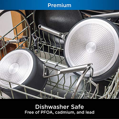 Details: Ninja Foodi NeverStick Premium Cookware is the cookware that won’t stick, chip, or flake. With a max manufacturing temperature of 30,000°F, our cookware won't rapidly lose nonstick like traditional pans made at 900°F can. Our coating is oven safe to 500°F, free of PFOA, cadmium, and lead, plus metal-utensil and dishwasher safe.