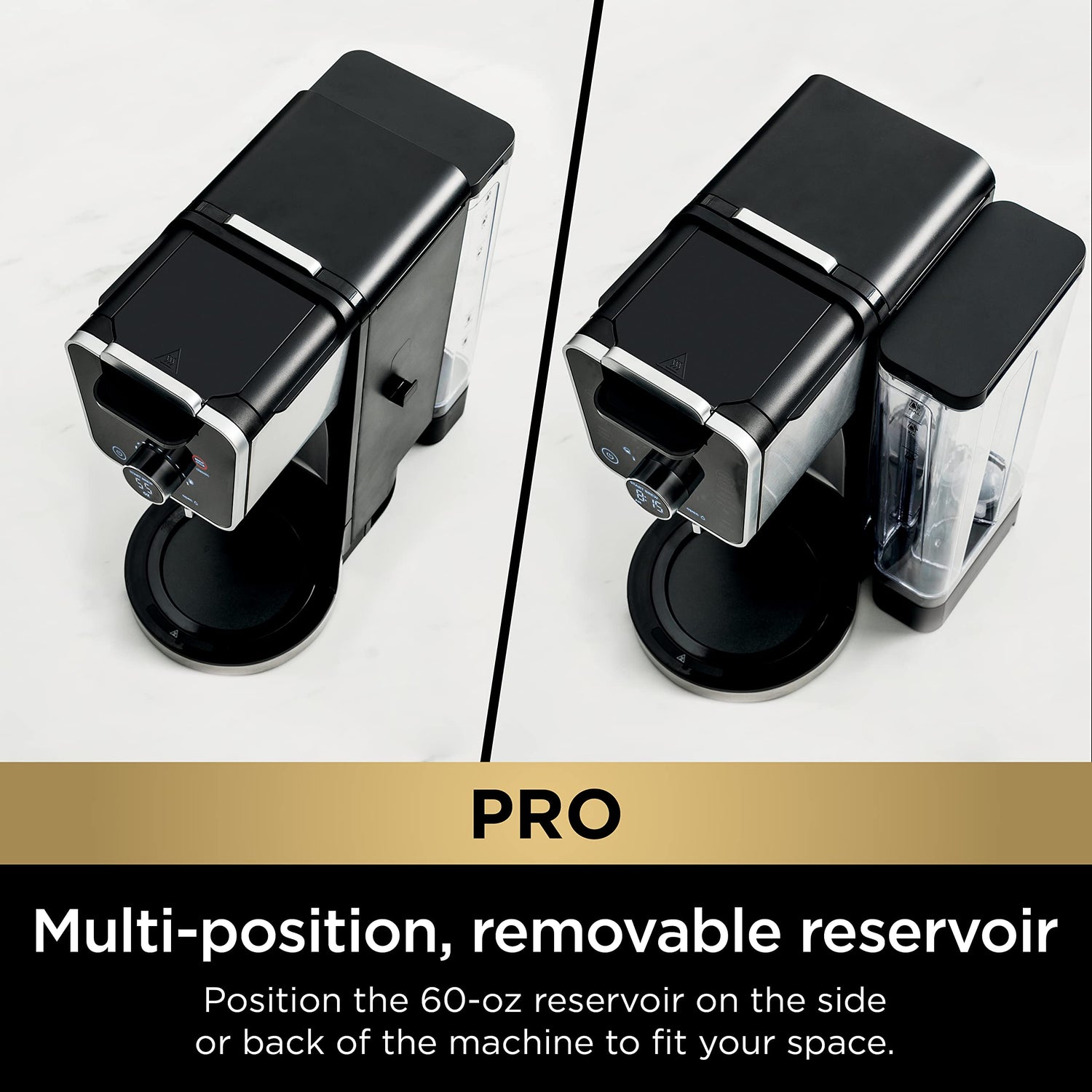 Details: Coffeehouse versatility meets pod convenience with the Ninja DualBrew Pro Specialty Coffee System, a single serve coffee maker, iced coffee machine, and barista coffee machine all in one. Tackle grounds and pods with 9 grounds brew sizes from small cup to full carafe, and 4 pod brew sizes from 6 to 12 ounces. Choose from four different brew styles for classic, rich, over ice, and specialty drinks. Use the fold-away frother to create cappuccinos and lattes or dispense hot water from the independent hot water system to make tea or soup. With Thermal Flavor Extraction DUO technology, obtain perfect flavor for grounds and pods with even saturation and precise temperature control for ultra-flavorful coffee.