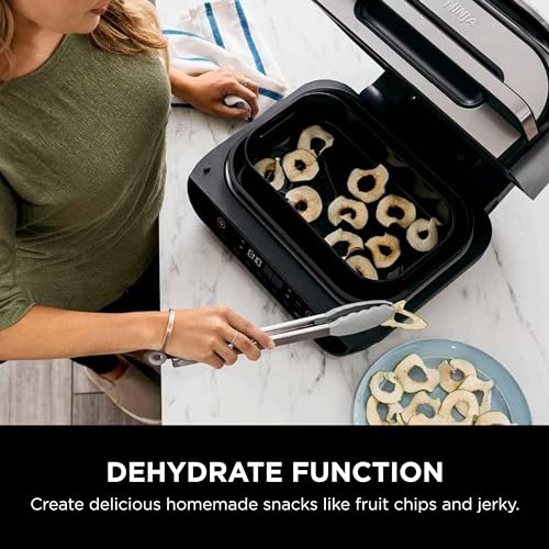 Ninja Indoor Grill, Foodi Smart XL 6-in-1 Indoor Grill with Air Fry, Roast, Bake, Broil & Dehydrate, Smart Thermometer, Black/Silver, FG551