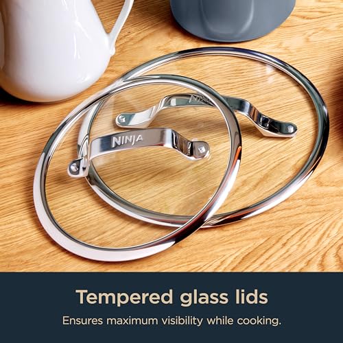 Ninja NeverStick Ceramic Pro 14-Piece Cookware Set, Non-Stick Pots & Pans Set with Glass Lids, Ceramic Coated, Stainless Steel, Stove to Oven Safe, All Stovetops & Induction Compatible, Blue CW39014MM