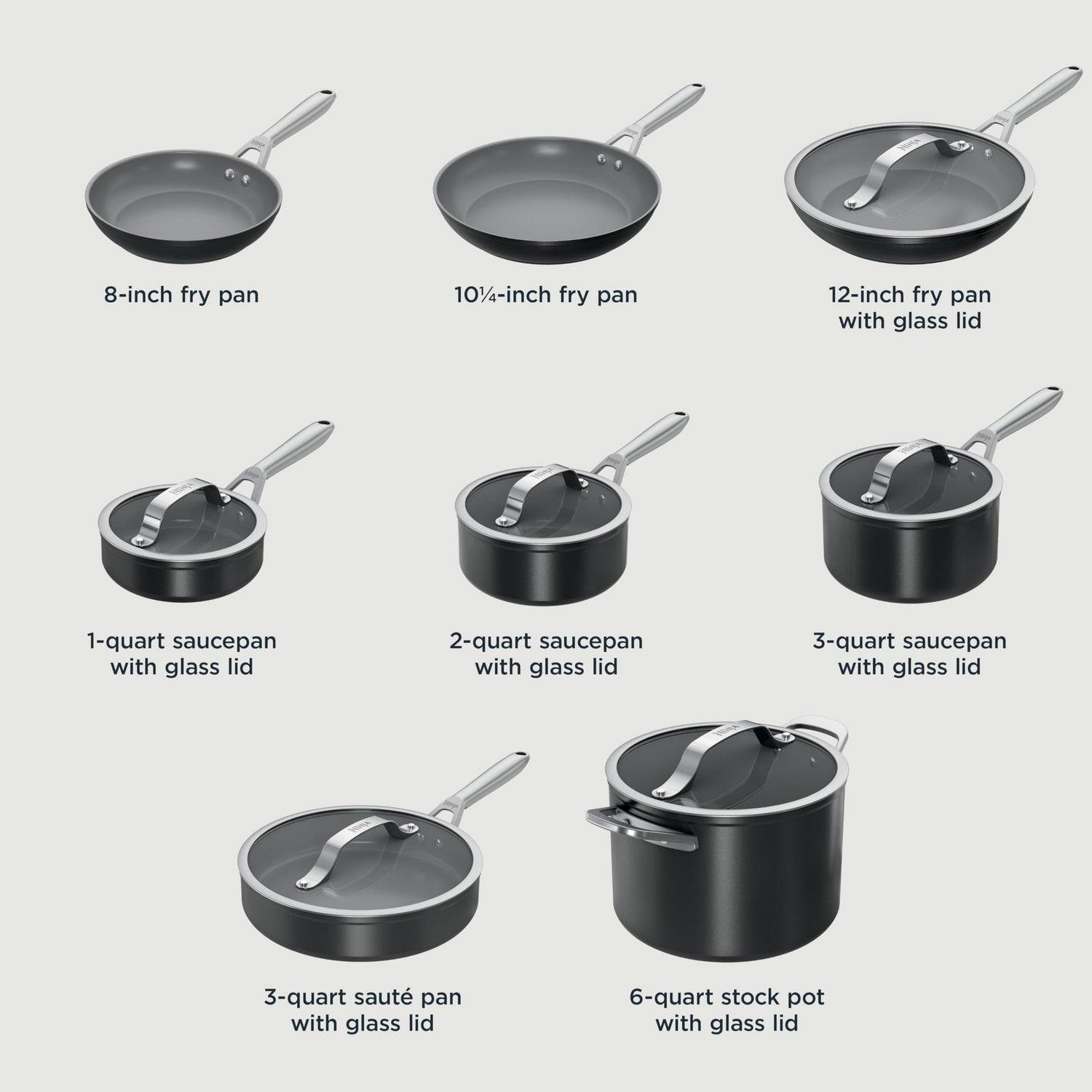 Ninja NeverStick Ceramic Pro 14-Piece Cookware Set, Non-Stick Pots & Pans Set with Glass Lids, Ceramic, Stainless Steel, Stove to Oven Safe, All Stovetops & Induction Compatible, Black, CW39014BK