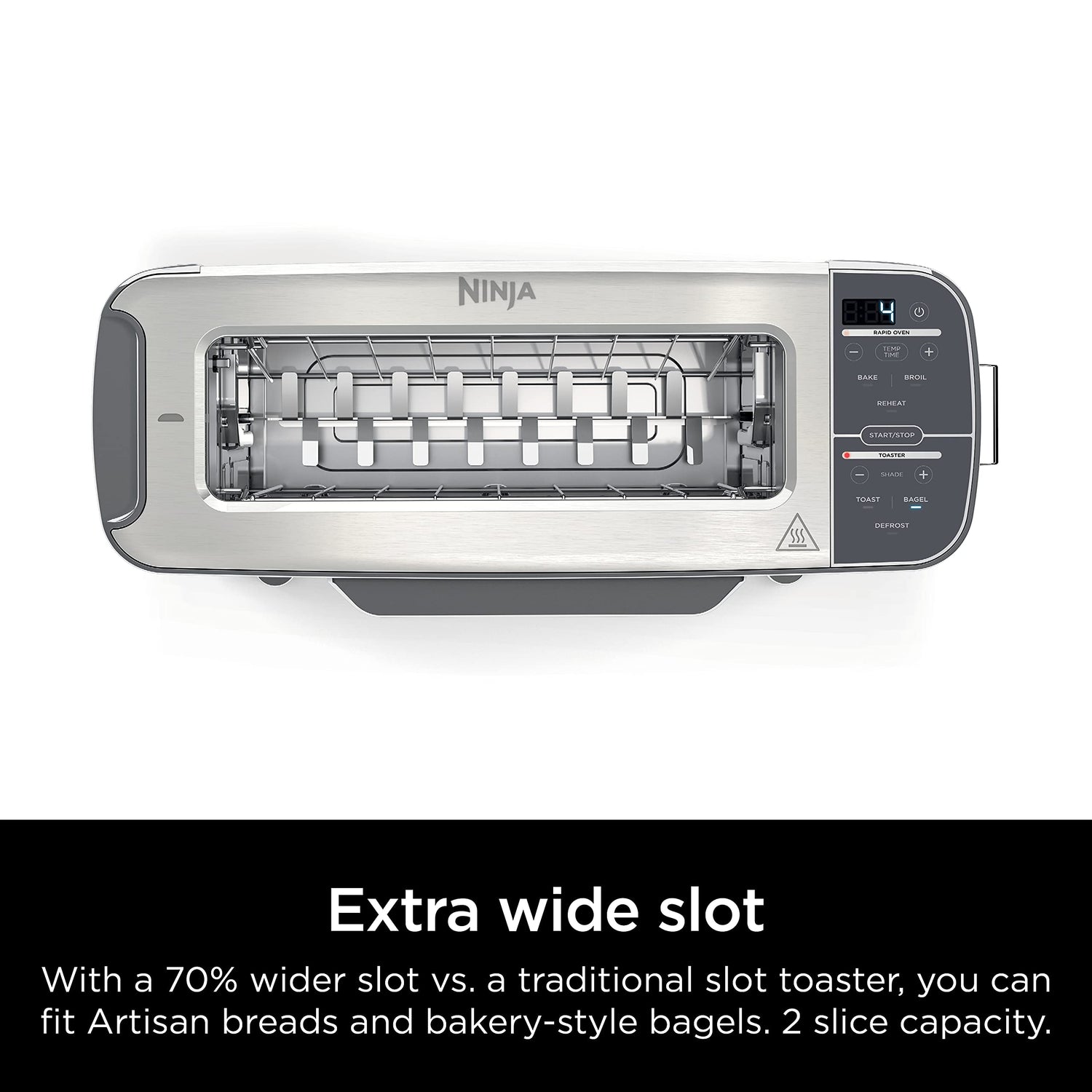 Ninja ST101 Foodi 2-in-1 Flip Toaster, 2-Slice Capacity, Compact Toaster Oven, Snack Maker, Reheat, Defrost, 1500 Watts, Stainless Steel, 6 Functions
