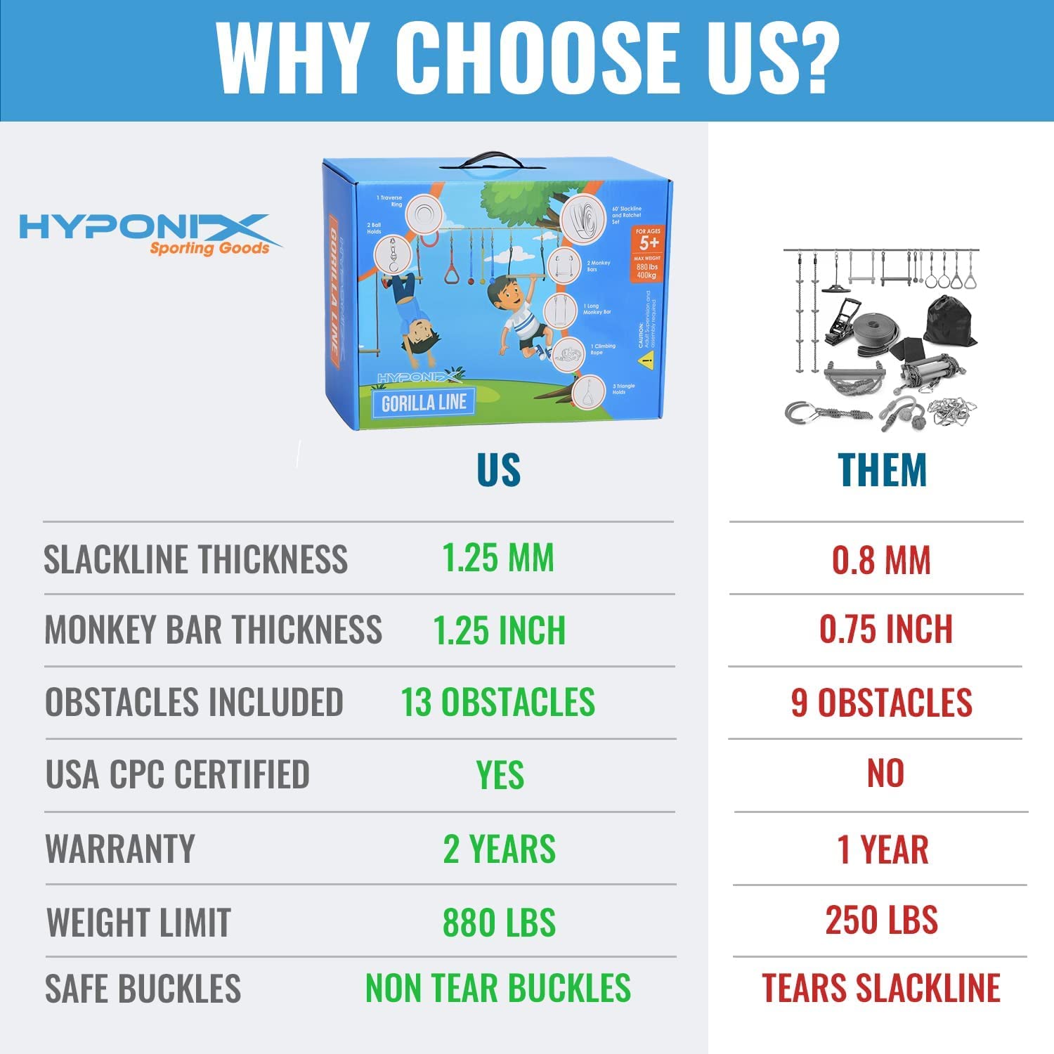 - COMPLETE NINJA OBSTACLE COURSE FOR KIDS – A full set of ninja warrior training equipment for kids featuring 2 x 60 ft slacklines and 13 weatherproof obstacles like a monkey net, rings, rope knots, monkey bars, and more — promoting climbing, swinging, and balance skills for ninja kids who love outdoor toys and active play.