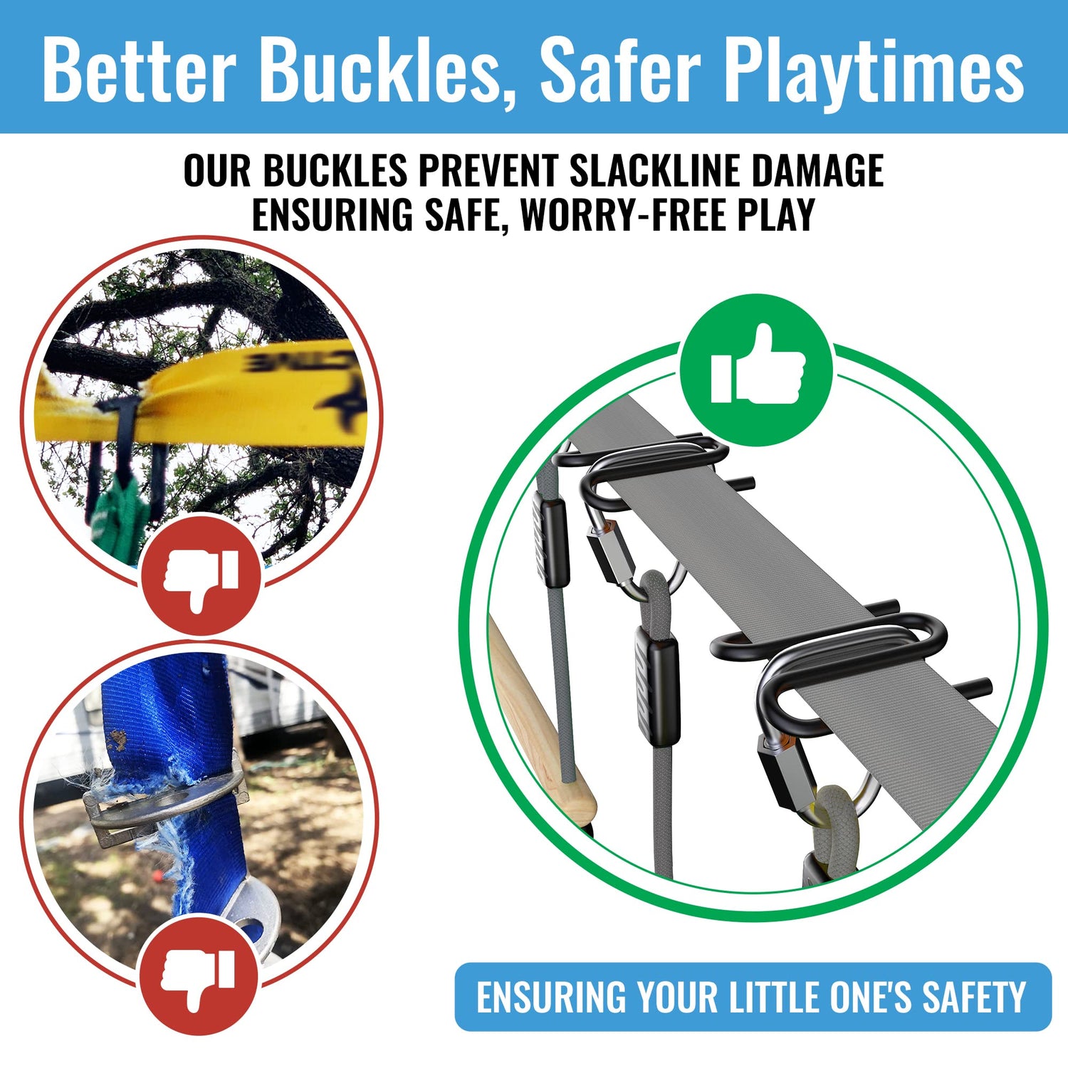 - ENDLESS CONFIGURATIONS, EASY SETUP – Each obstacle (including monkey bars and climbing ropes) secures with steel carabiners for quick adjustments based on skill level. Use our Ratchet Tight Technology to set up your ninja warrior training equipment for kids in minutes between two anchor points.