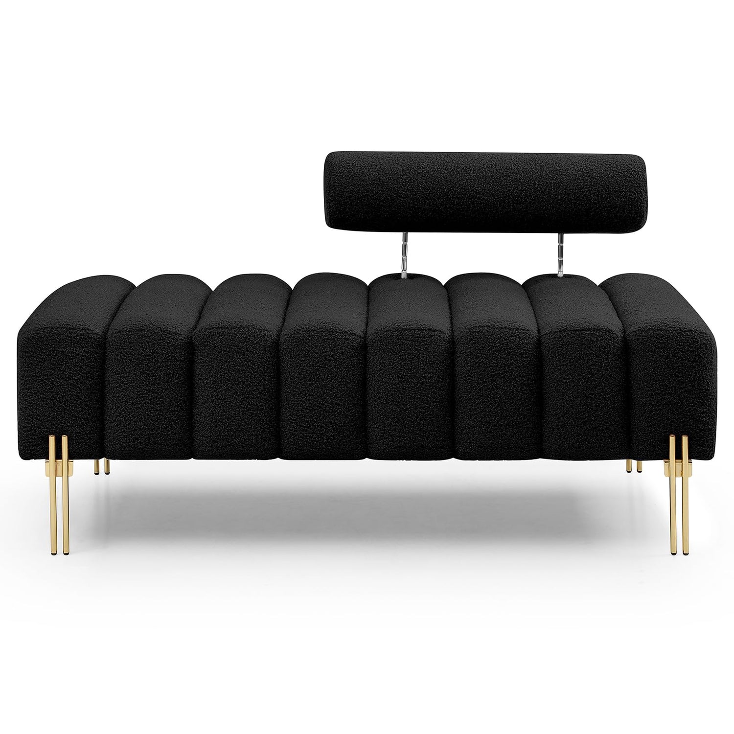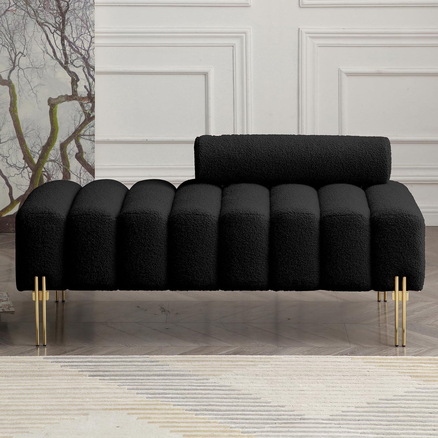 NIOIIKIT 53.2" Modern Loveseat Sofa Couch, Upholstered Accent Sofa with Golden Legs and Adjustable Backrest, Small Teddy Fleece Couches for Bedroom, Living Room, Compact Small Space (Black)