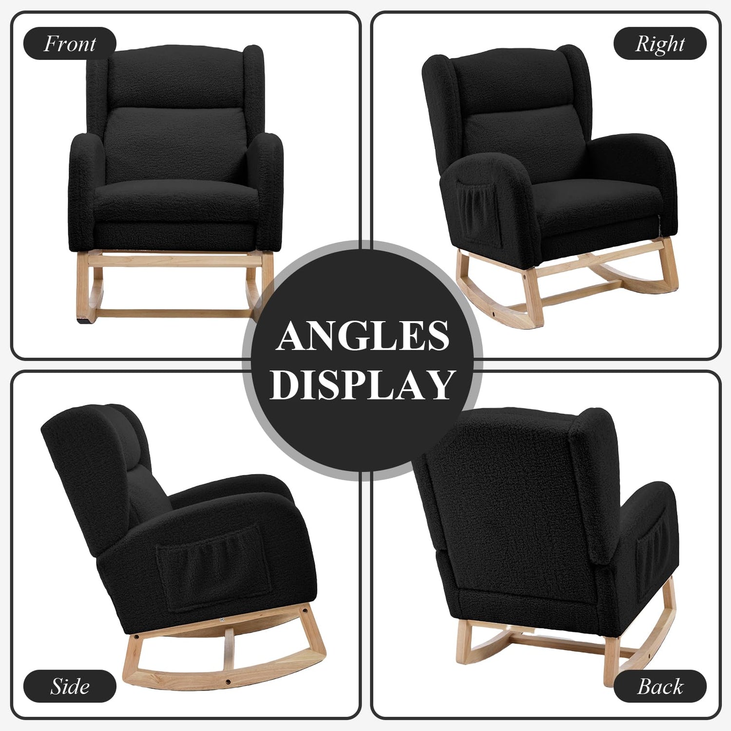 - Maximum Comfort - The rocking chair adopts an ergonomic arc design, which shakes gently and smoothly. The surface of the glider chair is made of soft teddy/linen fabric, which is gentle on the skin. The thickened seat cushion is filled with a whole piece of high-density foam, it has excellent cushioning and will not collapse for a long time! A refined curved wing back provides a comfortable sitting position for you to enjoy a leisurely time.