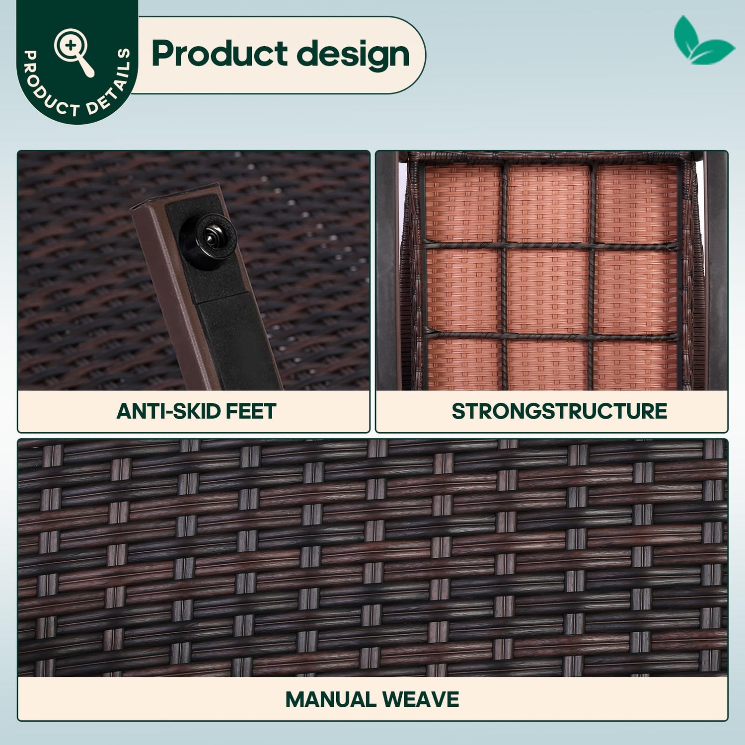 - Simple and Practical Wicker Patio Set: The detailed assembly instructions will help you to assemble the outdoor patio furniture easily and quickly. And it can be used in porches, courtyards, patios, balconies, pool sides, and other spaces.