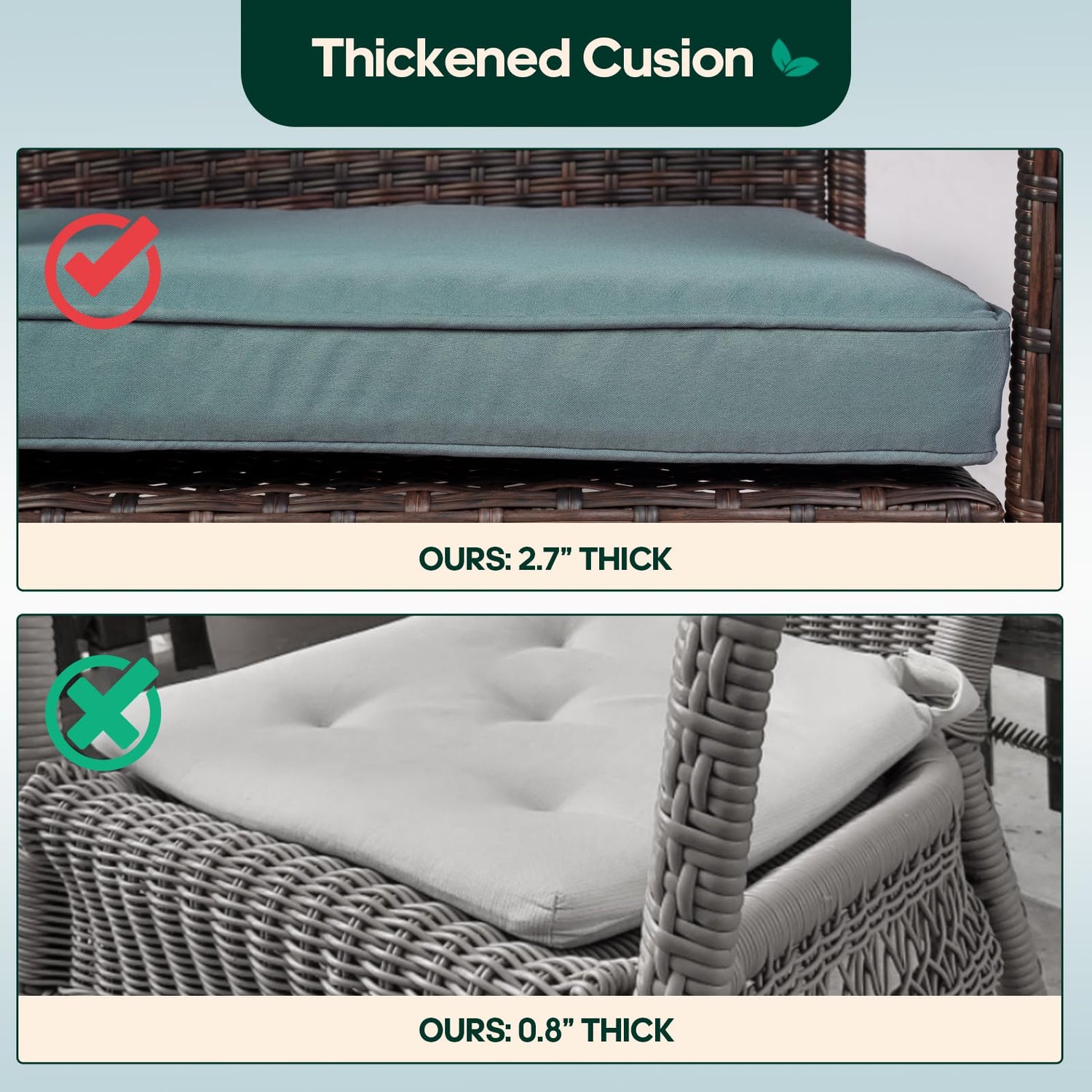 - Thickened Cushion: High-density sponge cushions offer maximum comfort. The rocking chair features durable cloth that is fade resistant, slight waterproof. The bottom cushion can be removed by zipper design that it is removable and washable for easy cleaning.