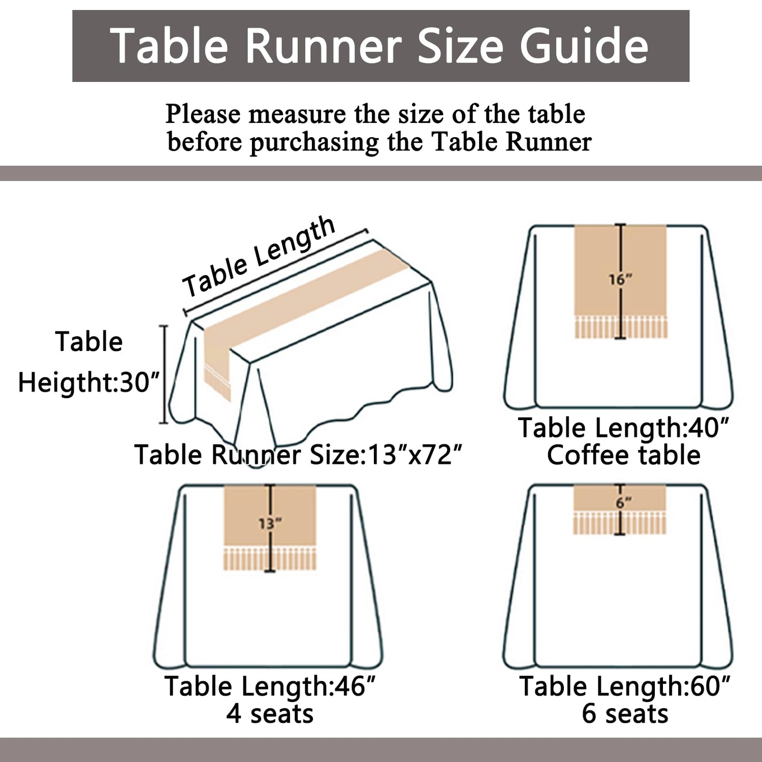 - Fits Table Size: This table runner is 13 x 72 inch, appropriate for a table that can seat 4-6 people. At Christmas holiday party, you'll need a Table Runner to add color and give you a delightful dining experience
