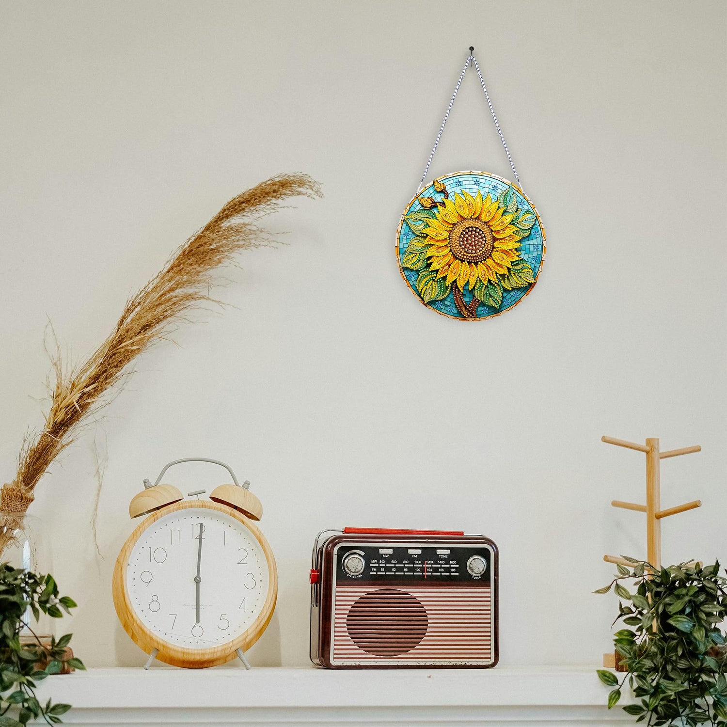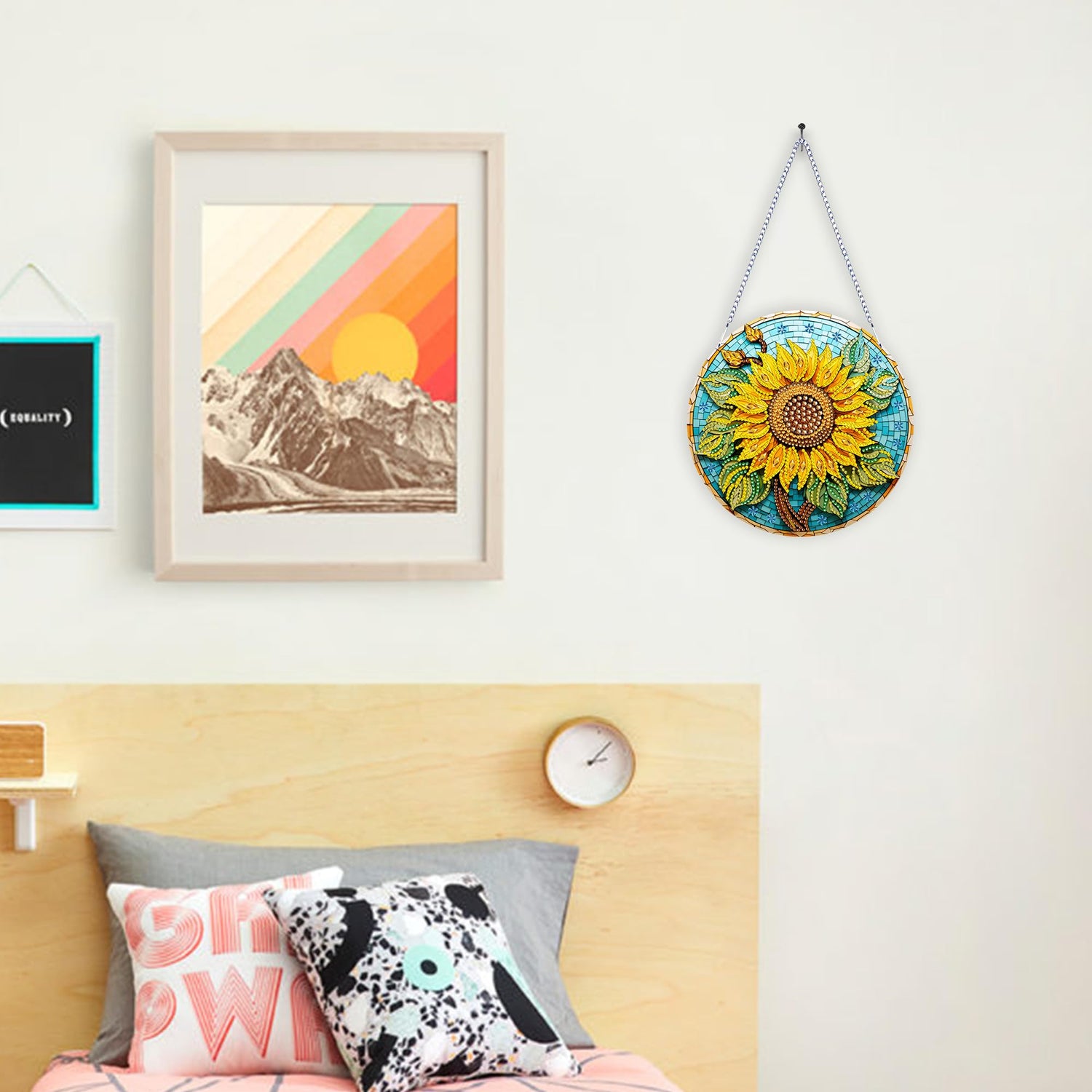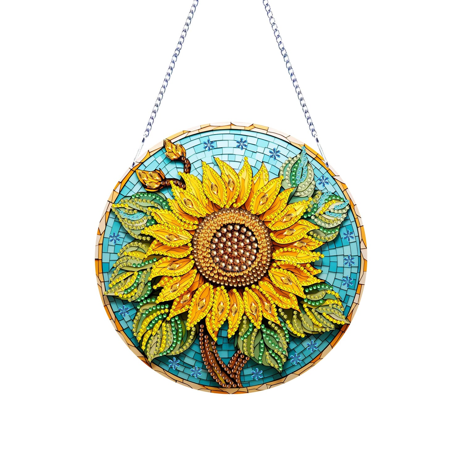 Nivvey DIY Hanging Diamonds Painting Pendant Kit Sunflower, 7.4x7.4inch Gem Painting Board Art Kit Ornament, Special Crystal Diamond Craft Box Kit, Yellow
