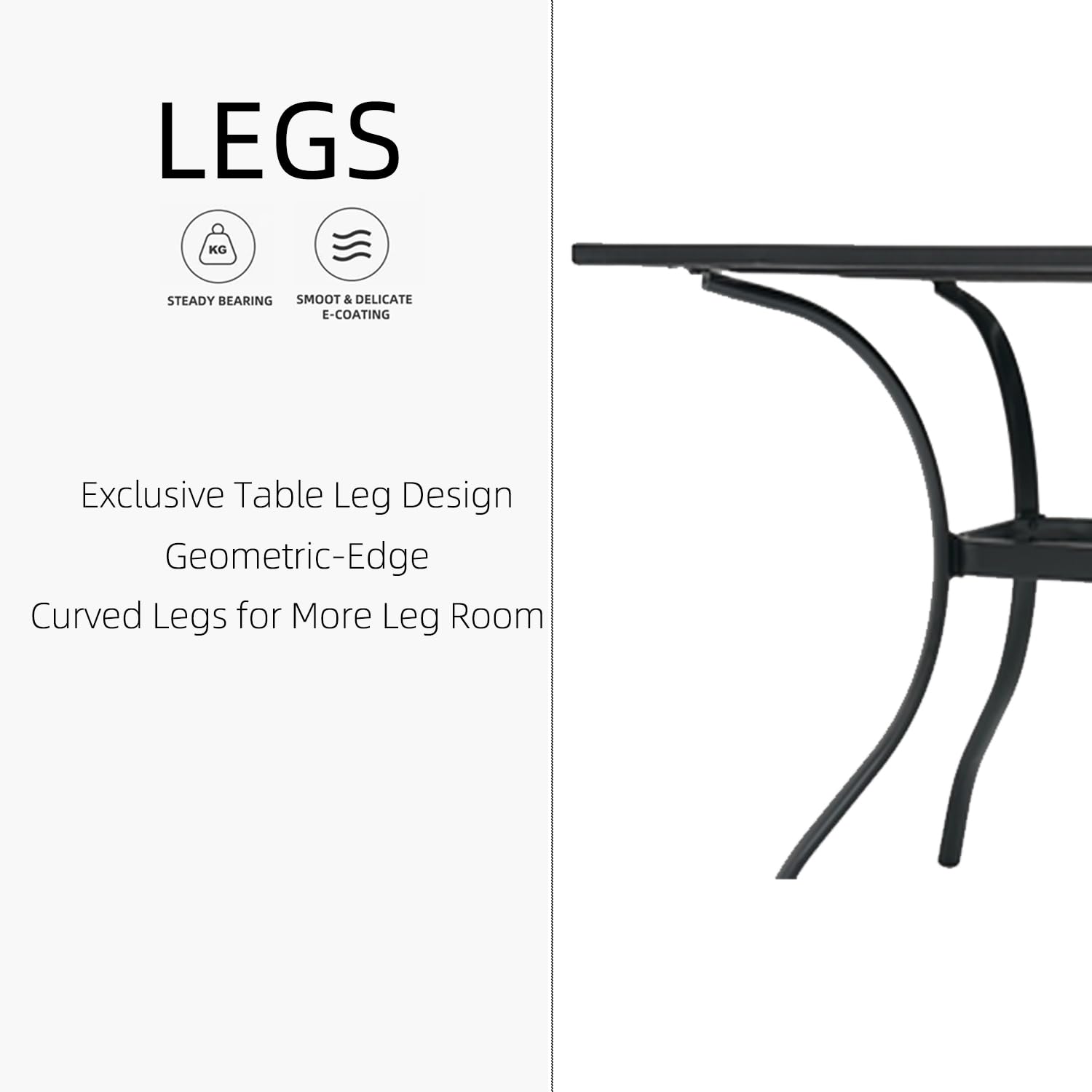 - Material: Table is made of steel, chair frame is steel, seat and back is textilene mesh fabric(excellent breathability and ductility);