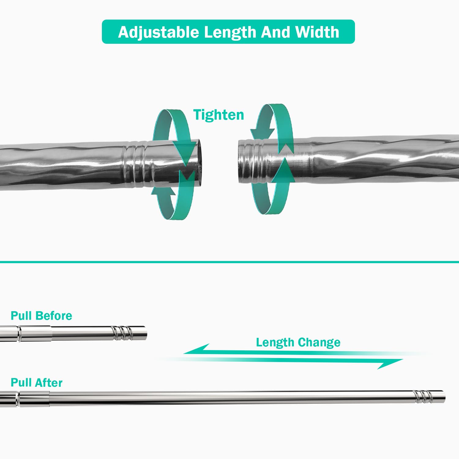 Details: This canopy bed frame size is adjustable,the minimum size is 39"*78", the maximum can be 86"*78",suitable for twin size,full size,queen size and king size and so on.This bed frame canopy made of high quality Thickened stainless steel, durable and strong enough to put the mosquito netting on. The diameter of the support column is about 1inch(25mm) and the diameter of the length and width pipes is 0.63inch( 16mm).This queen size canopy bed frame have reinforced reinforcement bracket feet are designed so that you can insert and press them underneath the corner feet of the bed to prevent the bed frame from moving and provide better stability. All support posts are threaded to ensure non-slip effect.With auxiliary support bar, forming a triangular structure with the support bar, more stable.The queen canopy bed frame top is connected by a metal triple-ended tube for a stronger connection and greatly enhanced load-bearing capacity. And bottom stand is also made of metal for a more secure fixing.The full size canopy bed frame comes with a fan rod, which can be used to hang a fan or small items, giving you a more convenient experience.
