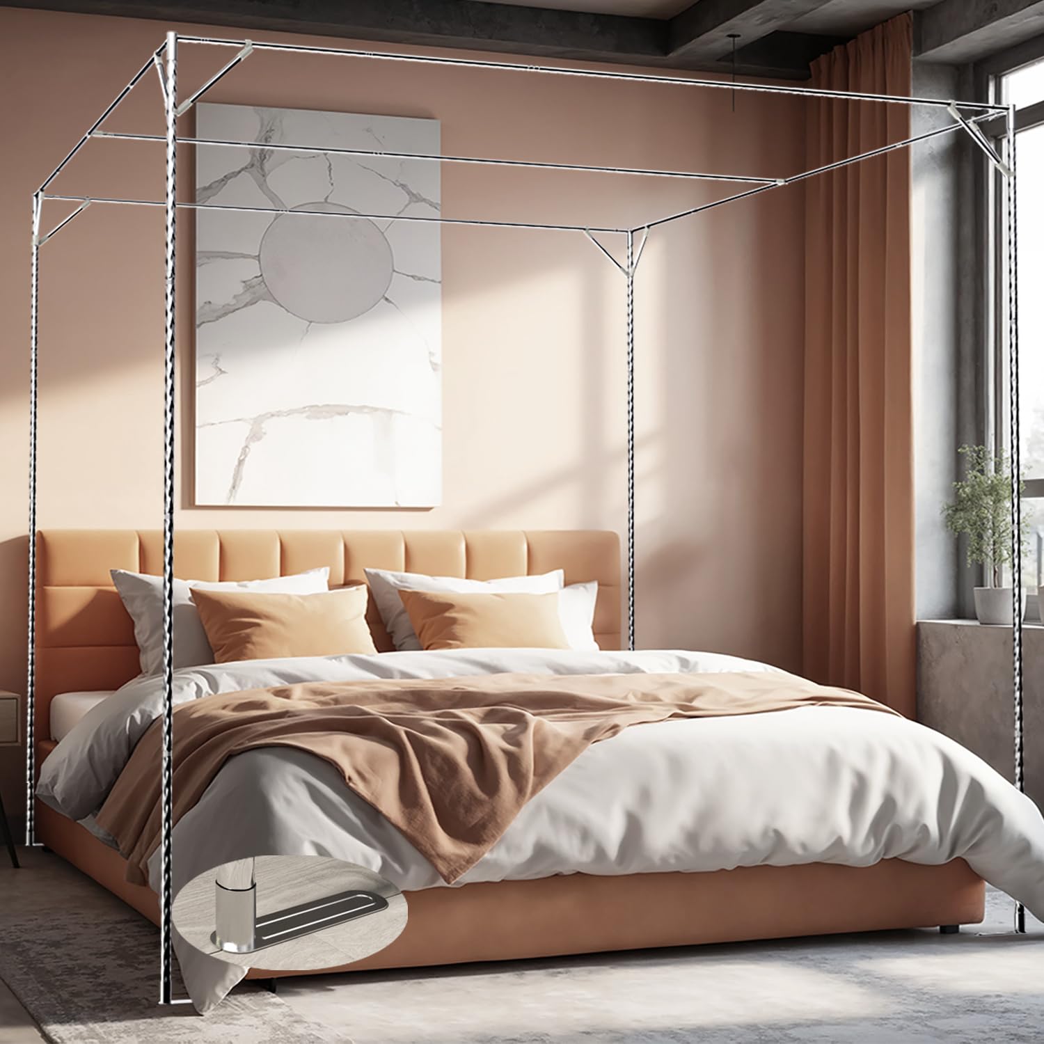 NKM Stainless Steel Adjustable Canopy Bed Frame, Suitable for Twin,Full,Queen and King Size, Thicken Bed Frame Bracket for Metal Bed or Wood Bed Mosquito Curtains Bedroom décor