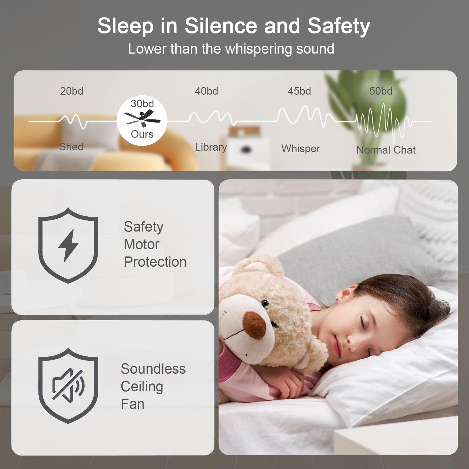 - 【Reversible DC Motor】 Our low - profile ceiling fan with light is equipped with a DC motor, which provides an excellent wind - blowing experience. The fan speed can be adjusted in six gears. You can freely switch among a comfortable gentle breeze, a natural soft wind, and a strong gale. The ceiling fans is reversible in two directions. It cools you down in summer and helps warm the room in winter, ensuring that the indoor air is constantly circulating for year - round comfort.