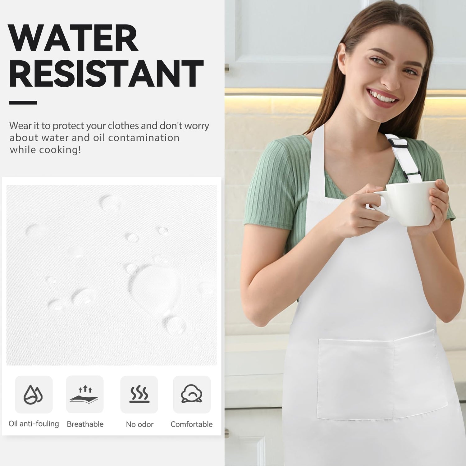 NLUS Extra Large Aprons for Men, Adjustable White Chef Apron for Men Kitchen Cooking Aprons for Women with 2 Pockets, Water & Oil Resistant - 1 PACK