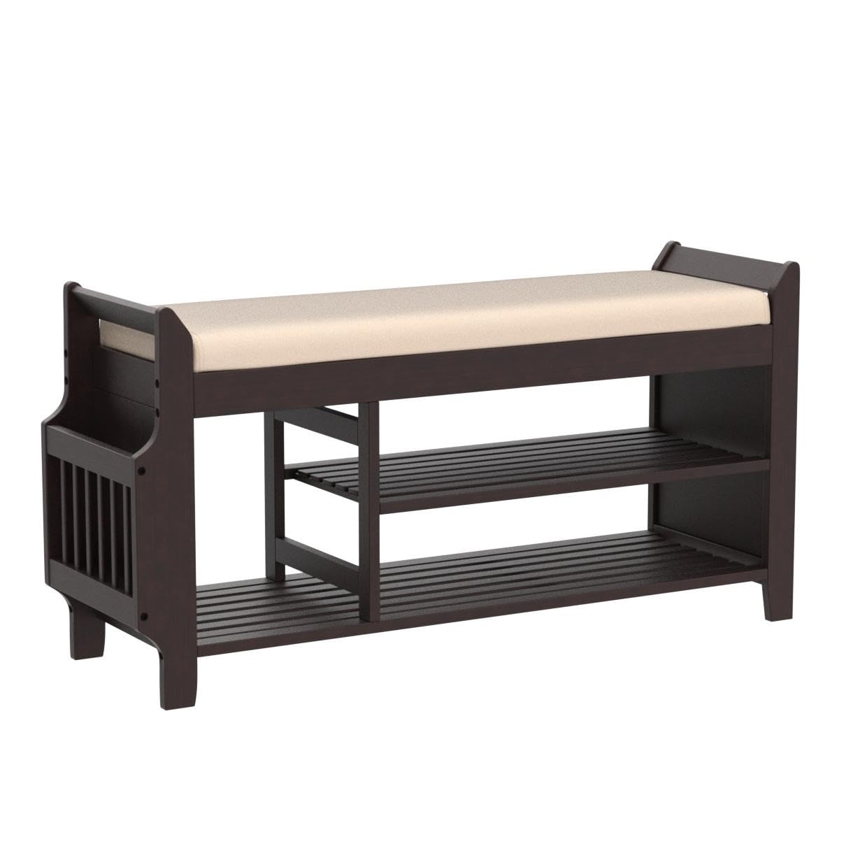 - -Practical and Comfortable Shoe Bench: This shoe bench is multiple uses, serving as a shoe rack , a soft bench with padded cushion and organizer. A cream-colored cushioned top and 2-tier shelves with a specific space tailored for taller boots.