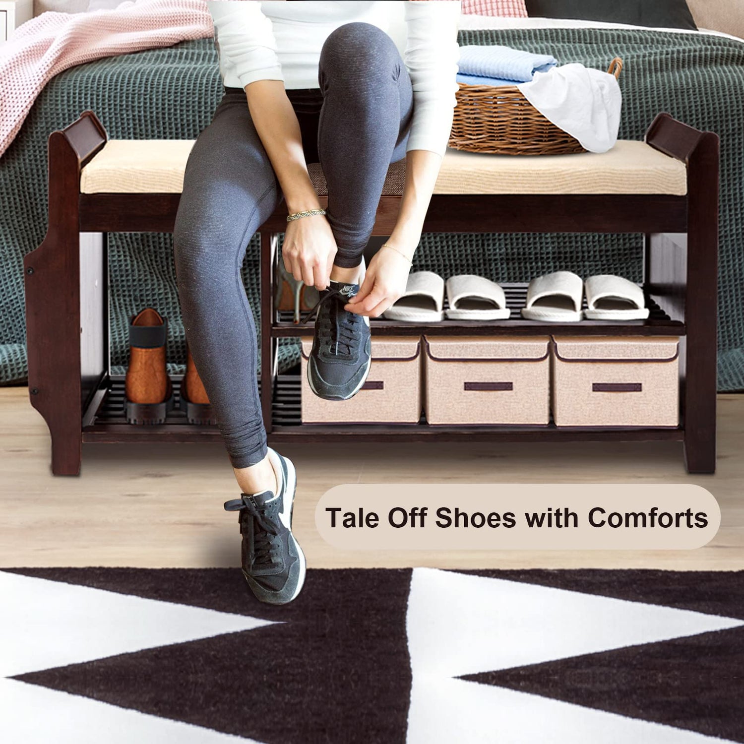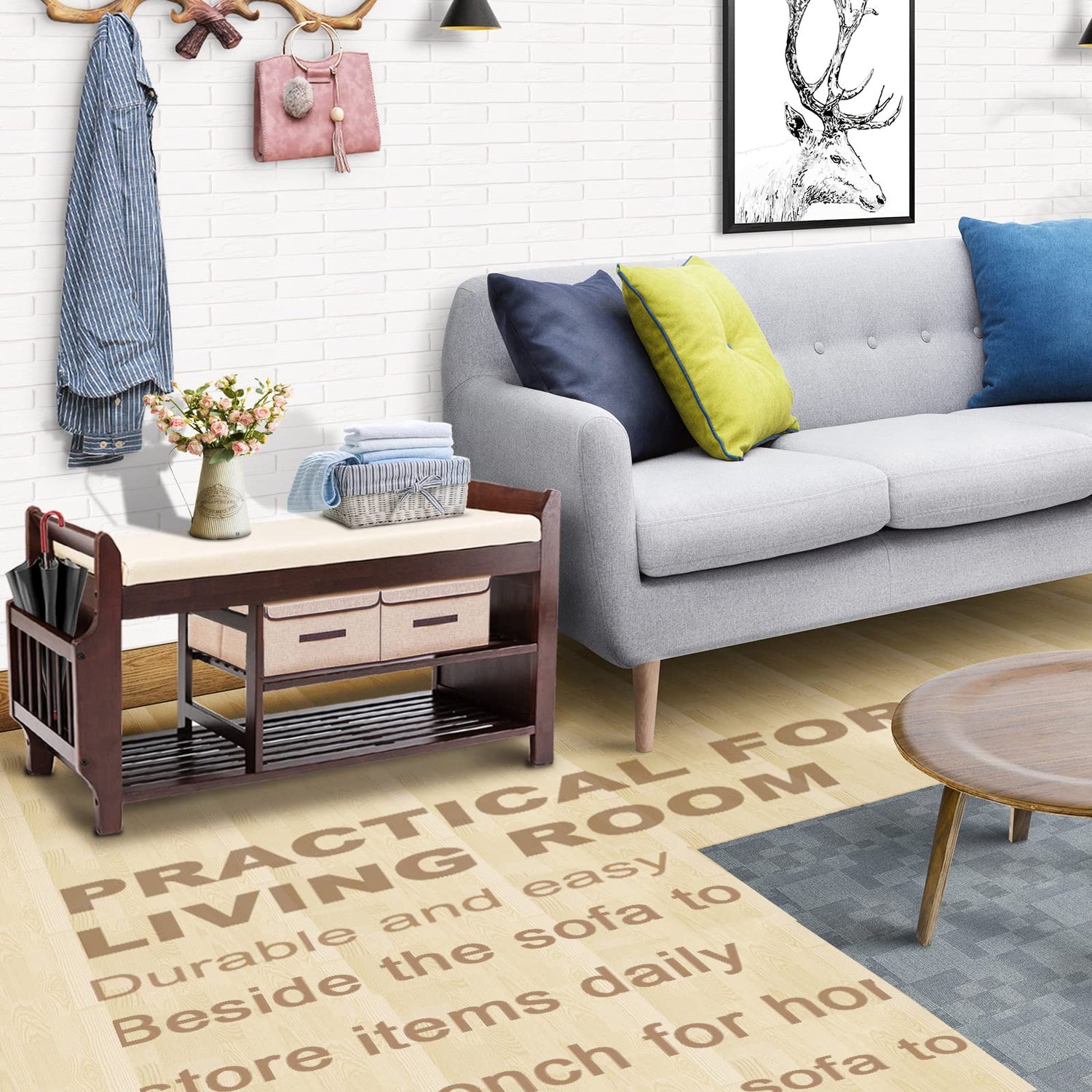 - -Convenient and Easy to maintain: Removable seating pad and cushion are easy to clean. A composite board under the cushion so that the cushion won't sink while you're sitting on it. Wear-resistant felt pads on the feet of the bench protect floors from scratches. Shoe rack won't be a trouble maker for housewife.