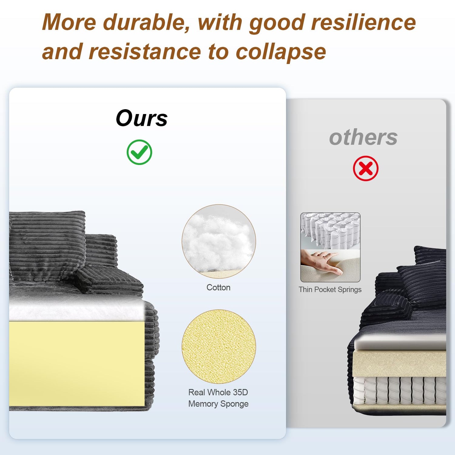 - Whole 35D memory sponge with high rebound.Soft Corduroy Fabric: Enjoy comfy.It offers softness and warmth.The sofa covers can be taken off for cleanning and washing.
