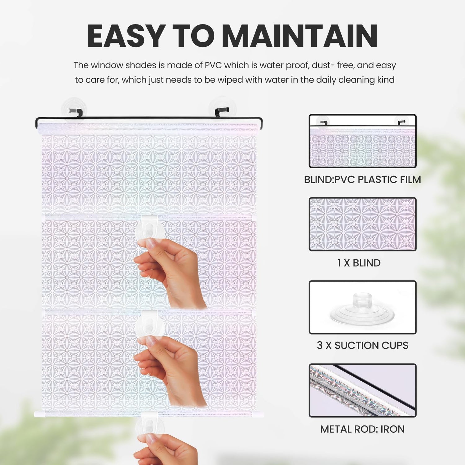 - EASY TO MAINTAIN: The window shades is made of PVC which is waterproof, dust- free, and easy to care for, which just needs to be wiped with water in the daily cleaning kind.