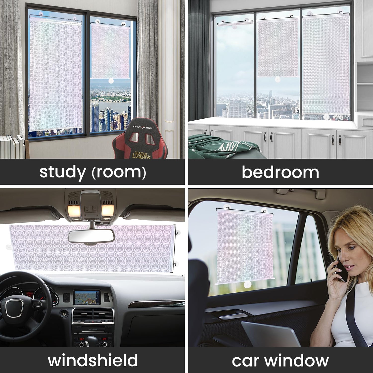 Details: Each sunshade is equipped with 3 suction cups, suitable for cars, bedrooms, and offices, without damaging the windows. The material is lightweight, ensuring UV insulation and protecting your privacy