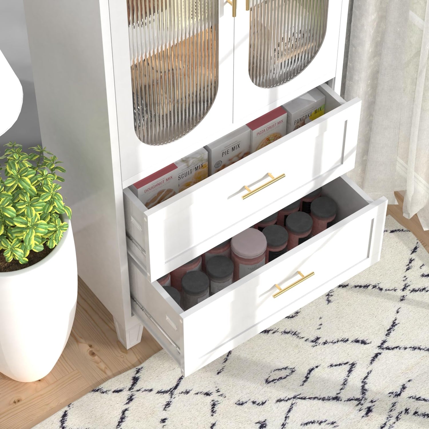 Nobilsteel 71”Storage Cabinet, Metal Accent Pantry Cabinet, Food Pantries Cabinets with Fluted Glass Doors, Storage Cupboard Kitchen, Dining Room,