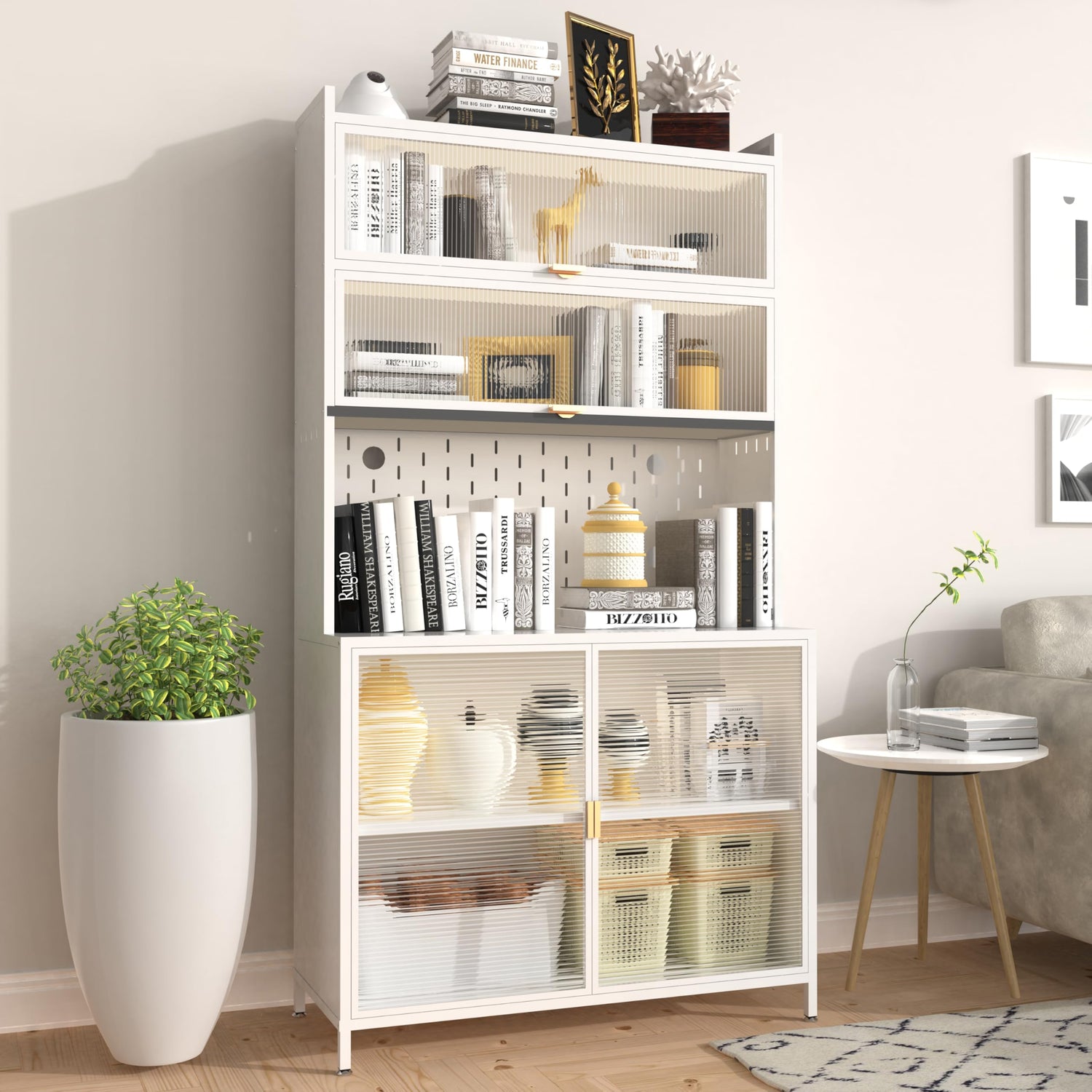 - High-Quality Materials: Metal pantry cabinet from cold-rolled steel, this cabinet boasts high tensile strength and durability, moisture and rust resistance. More durable and environmentally friendly than ordinary wooden cabinets. Translucent door panel adopts wave pattern flip-type plastic material.