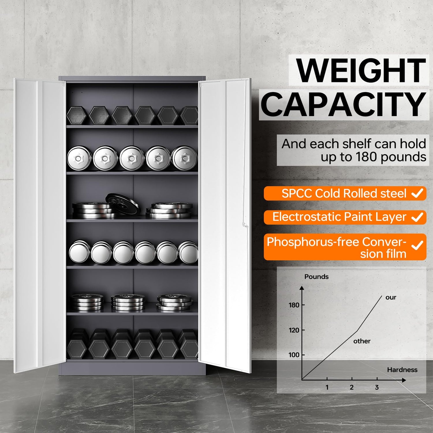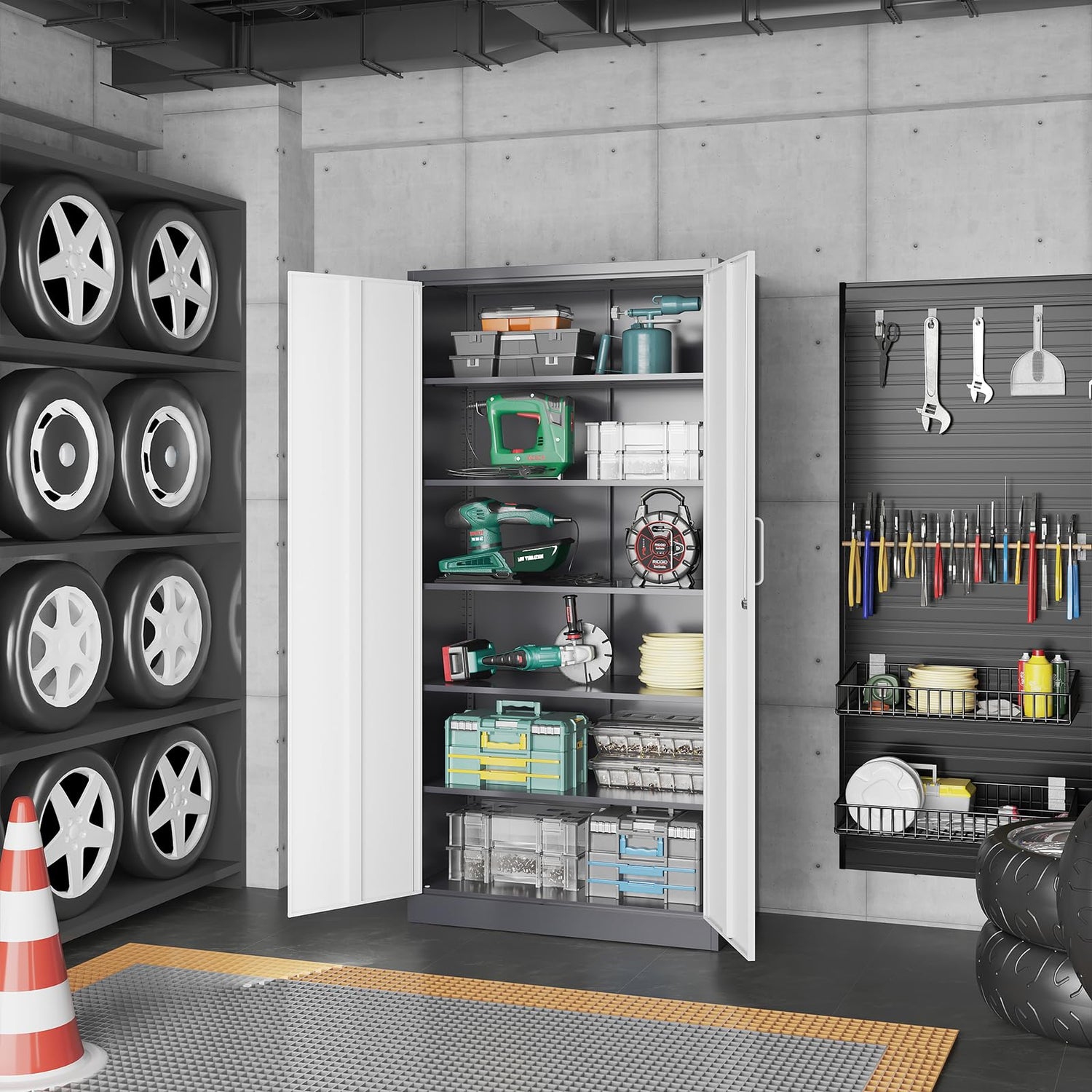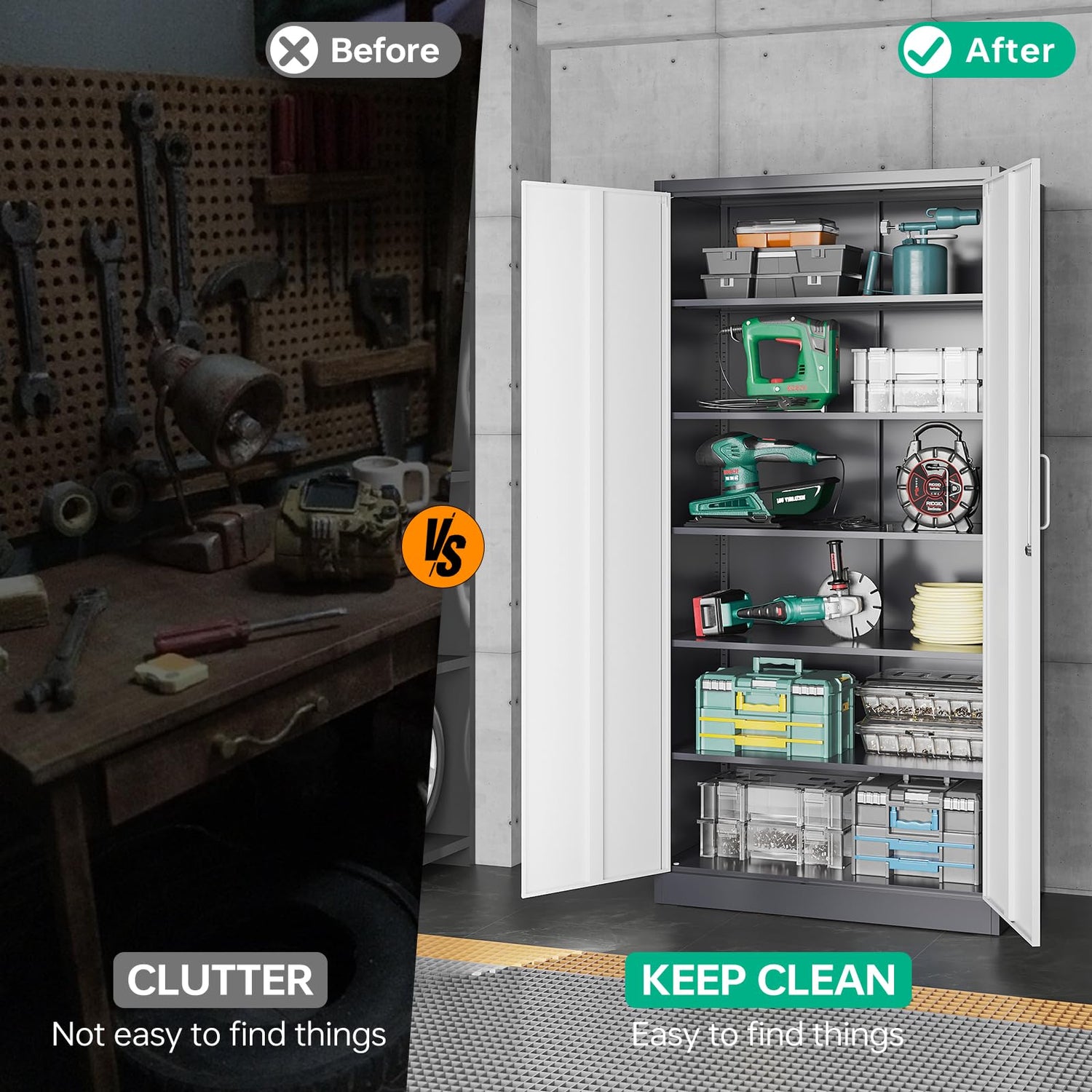 - 【Lockable Tool Cabinets】This storage cabinet is lockable and includes two keys, providing advanced security to keep your valuables and important documents safe from unauthorized access. It can be used in various settings like garages, homes, archives, utility rooms, offices, or laundry rooms.