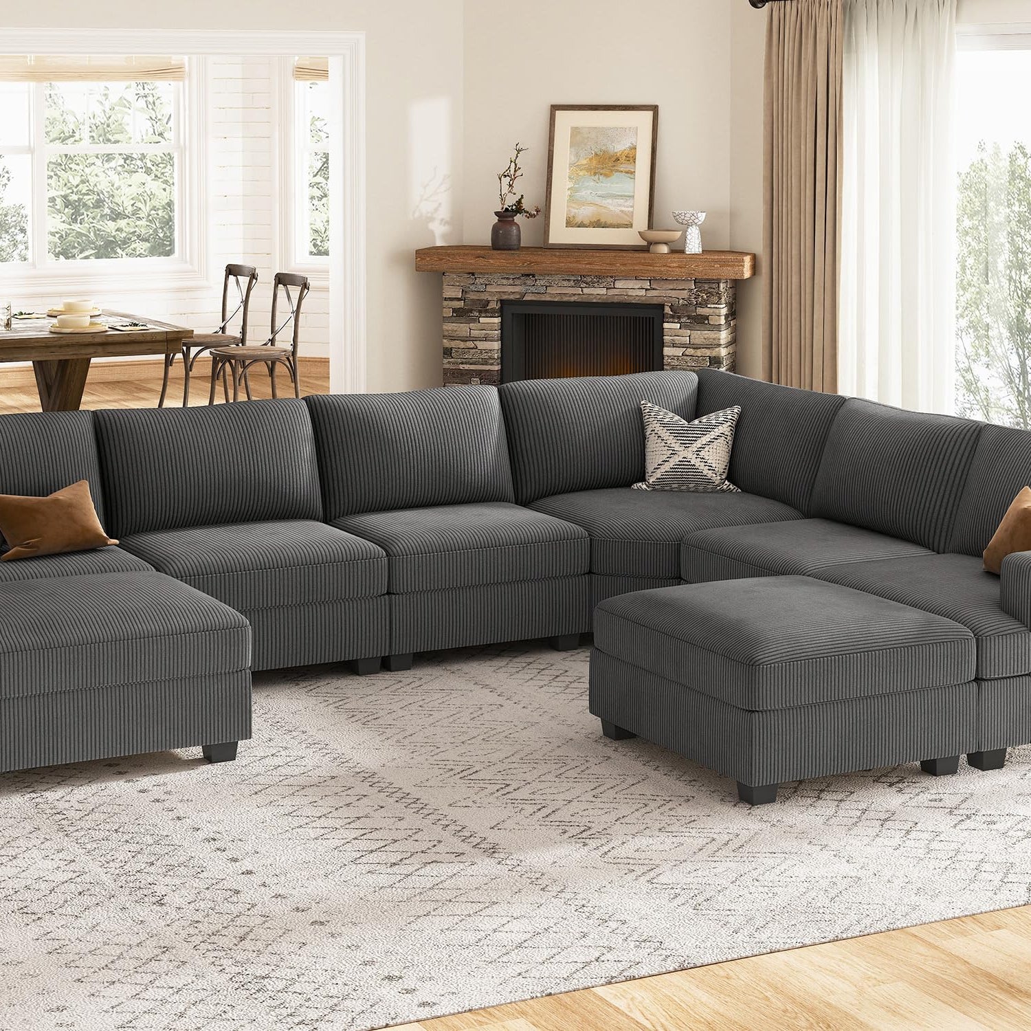 - Comfortable sectional sofa: The sectional offers a oversized seat with cushions that are both bouncy and plush, ensuring a top-notch comfort level when seated